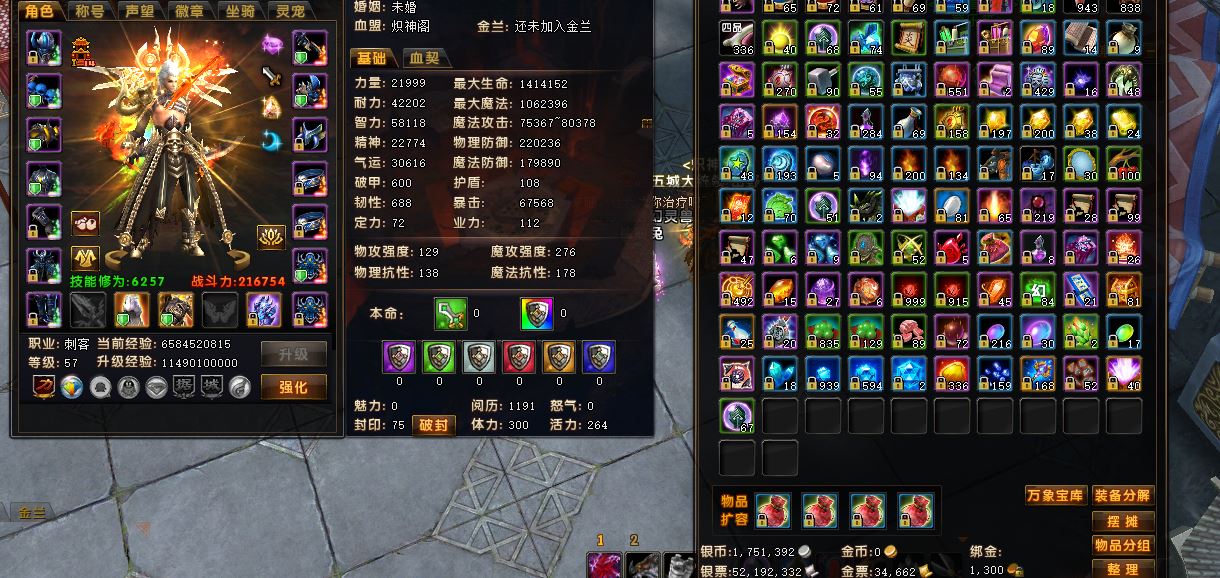 【刺客 男 角色等级57 不可以二次实名 】22W泥鳅小卡级胚子号,橙色时装161蓝剑坐骑带1300绑金