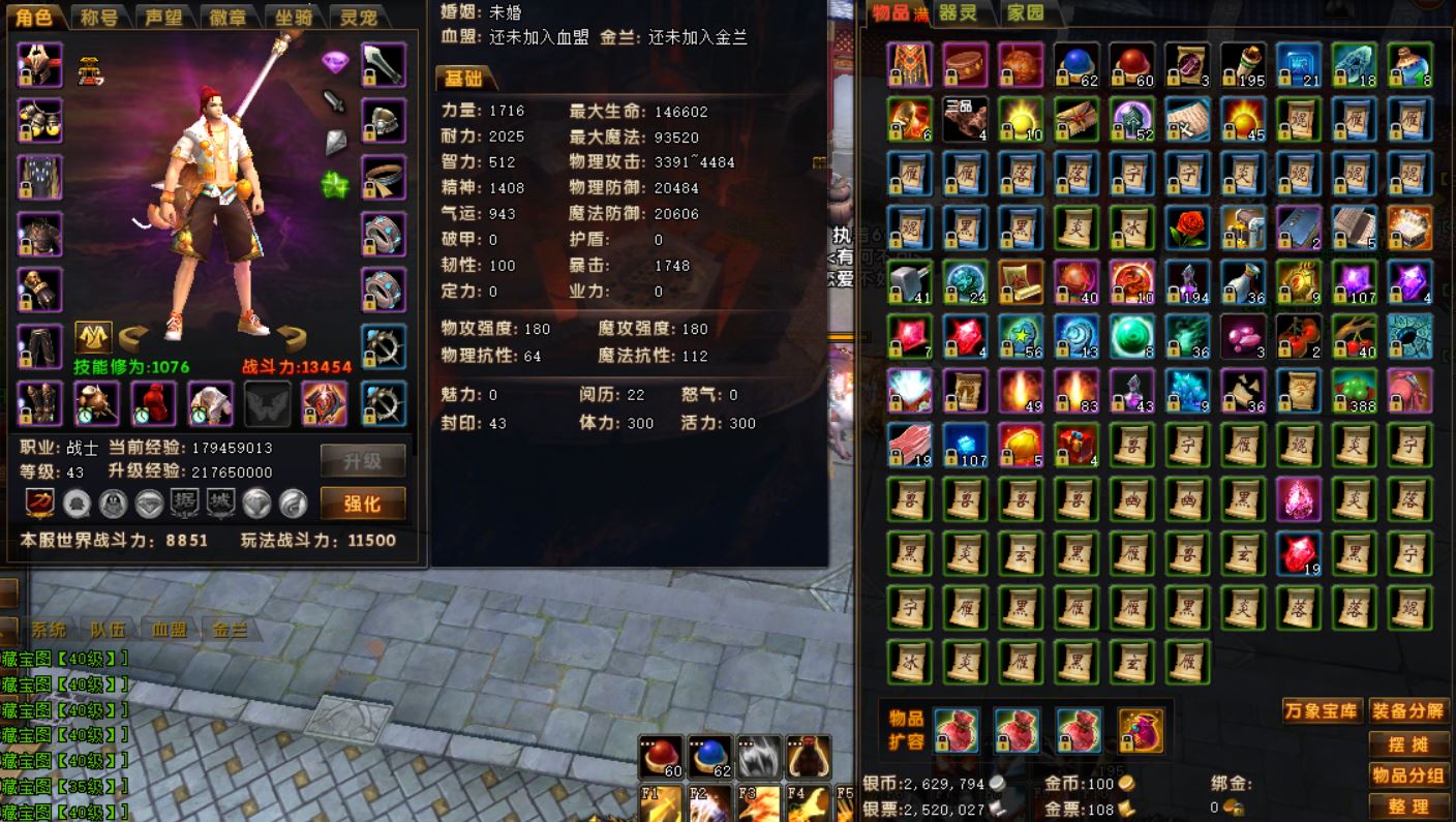 【战士 男 角色等级43 可以二次实名 】达标战士,有点金币和银币,资源多多