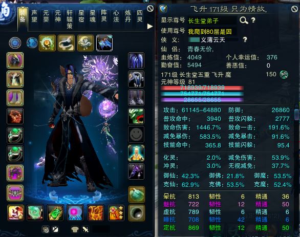 【一个月内,找回包赔】【长生堂 五重修真 男 角色等级171 魔 人族 】出1件13,2件12,2件11套副本长生堂