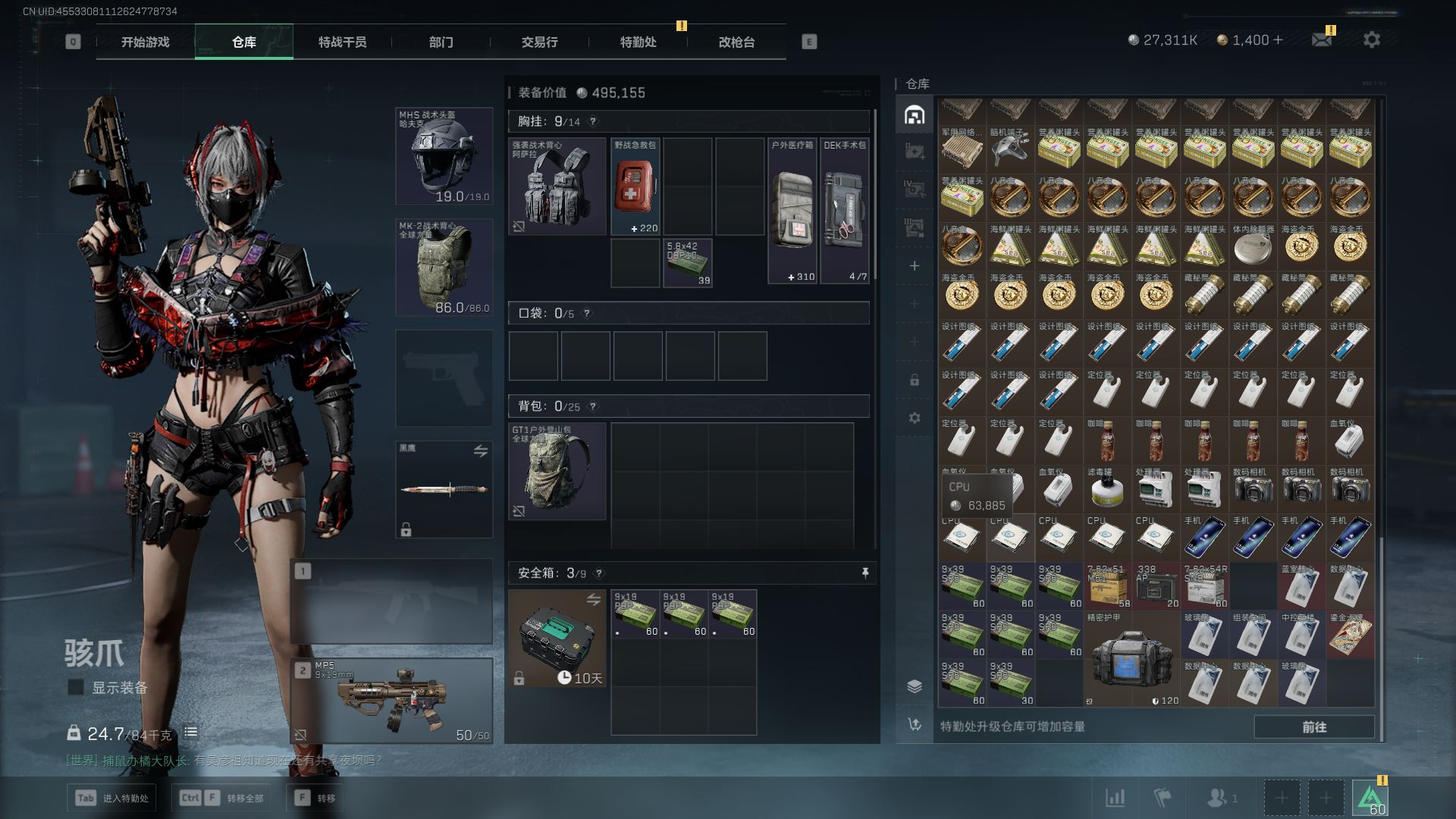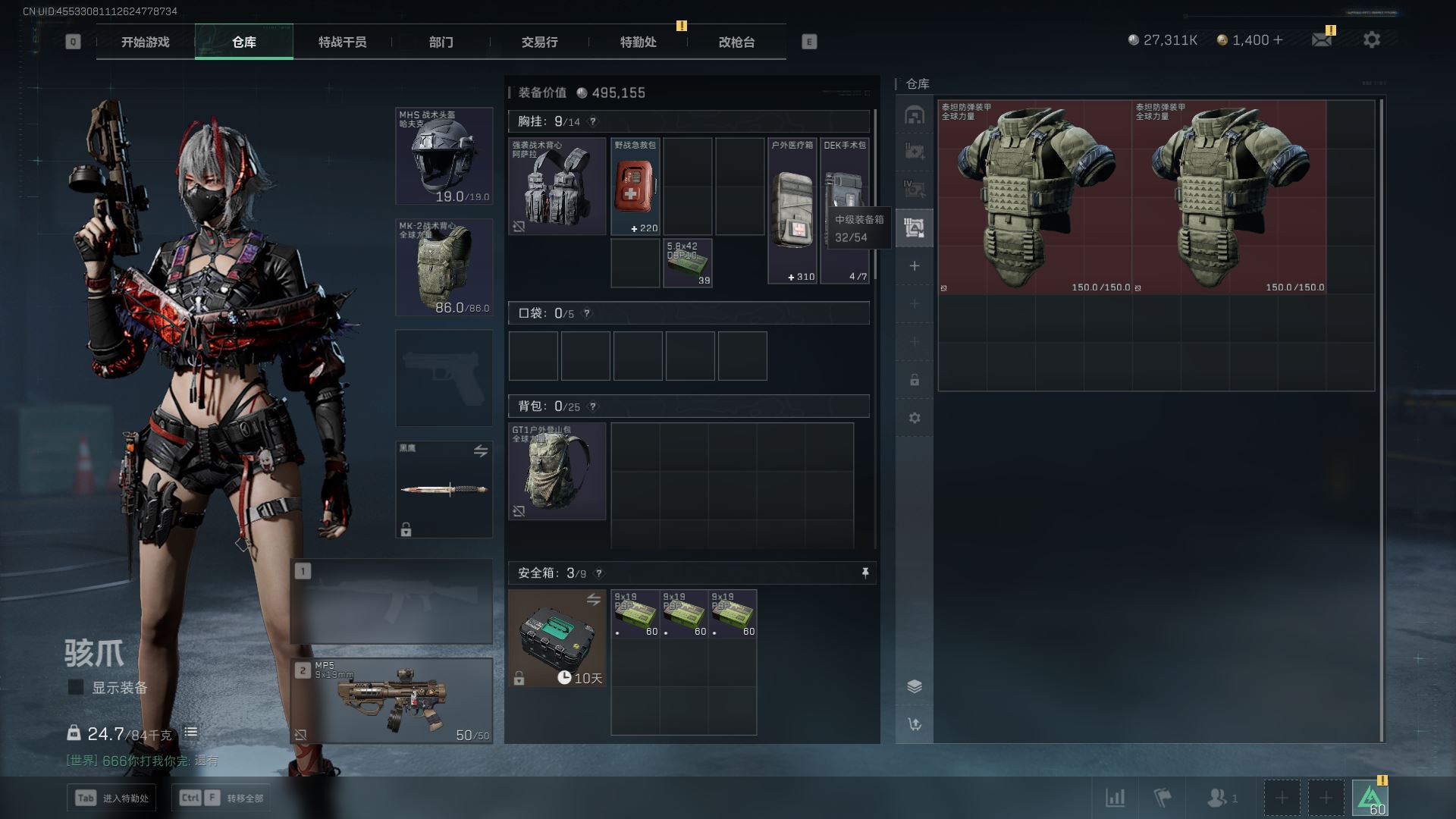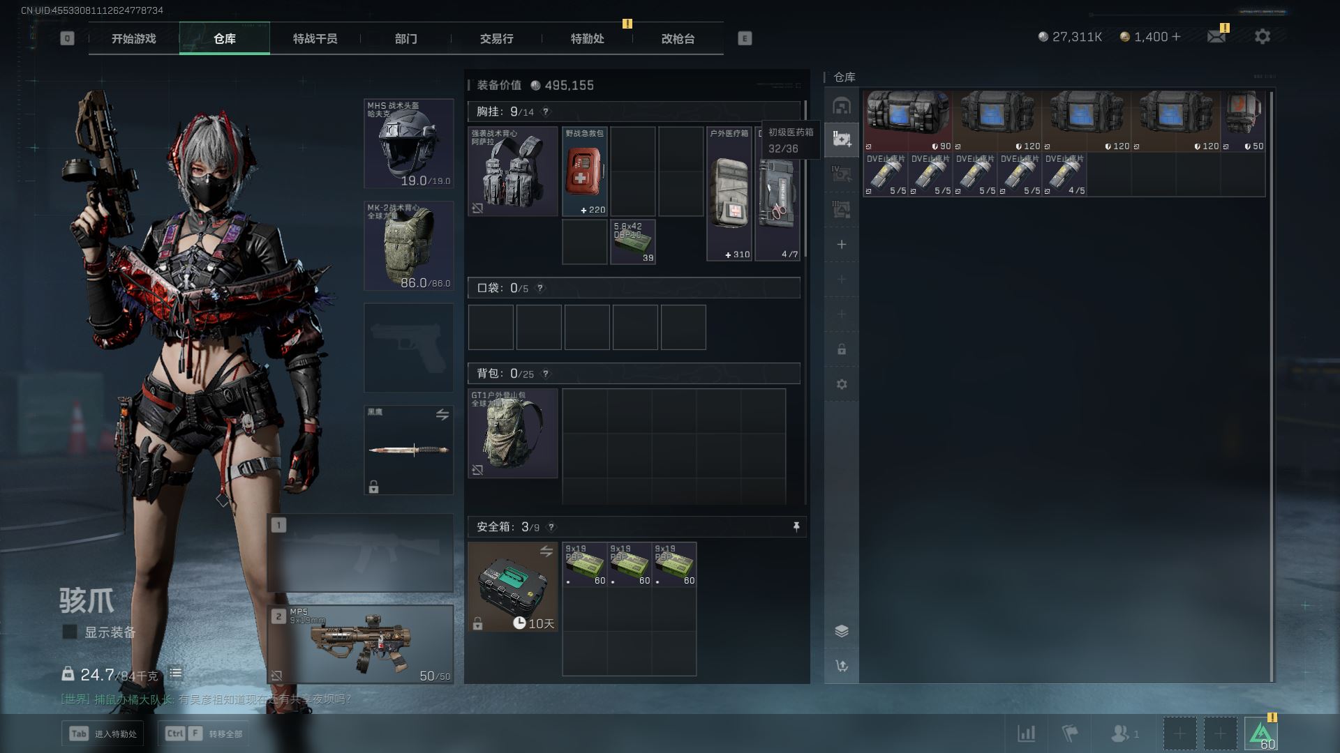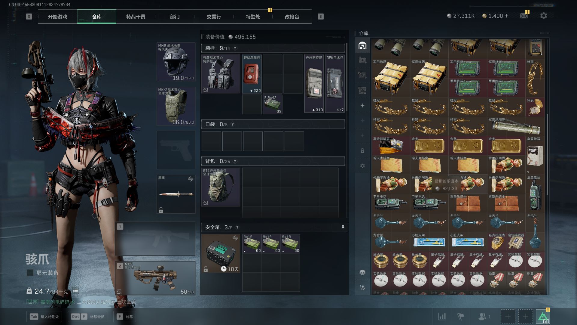 【行动等级:60总资产m:110流动资产m:97哈夫币w:2731干员皮肤:维什戴尔安全箱:顶级安全箱9(3x3),进阶安全箱4(2x2),高级安全箱6(2x3)Vector冲锋枪-先锋,QCQ171冲锋枪-鹅鸭杀,MP5冲锋枪-三角洲力量】:*级级安全箱(3x3)和高级安全箱(3X2)命运契约已完成,收集者锁定随时可以点提交物品完成,其中还有整个仓库的大红小红,大金小金,再具体看截图吧