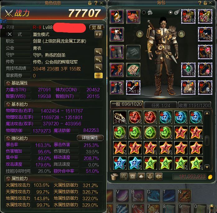 站街151W+剑圣,+19九星尼龙剑、+18九星尼龙盾全觉醒、7不灭首饰全+10全9星全觉醒,17、16防具套、极品资质号可深入打造潜力无限,战士全服排行8-1