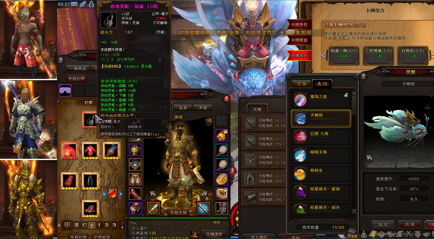 双线四区枯松涧13合1,V8小背景80灵猴白骨左右耳玉兔命格,双翅膀及仙6问道3已开五组卡牌,6W攻千攻速千9抗3270火提移速鞋,高四三天帝魔君套有印40%武