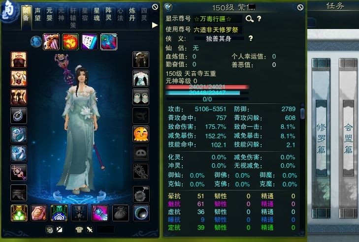 【一个月内,找回包赔】【天音 五重修真 女 角色等级150 未飞升 人族 】🐯主线全清带金印上线即可飞升🐯经验珠4568铁玉齐全🐯