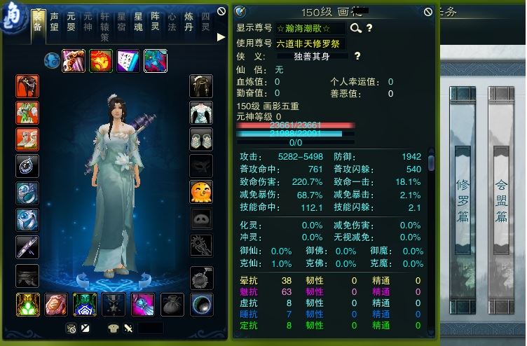 【一个月内,找回包赔】【画影 五重修真 女 角色等级150 未飞升 天脉 】主线全清带金印上线即可飞升.三攻击元婴.经验珠4568铁玉齐全🐯