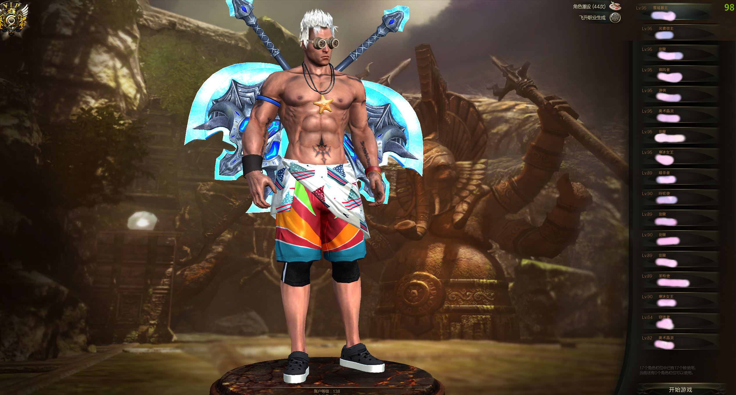 【战士 男 等级95 喜游戏账号 】没时间玩了,17连体,账号等级138级8把新天龙,新时装,还有几个新翅膀材料一堆