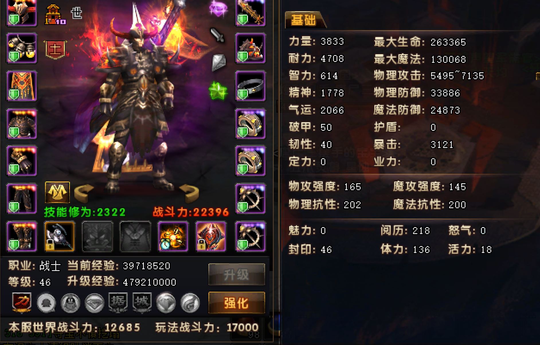 【终身找回包赔】【战士 男 角色等级46 不可以二次实名 】2.2W+战士,器灵可吐1.7W经验,1500W银票便宜出