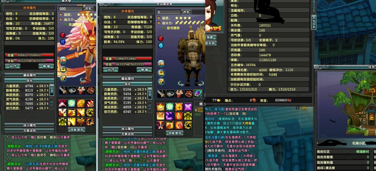 大鹏一套5级攻击和血.天使一套5级血.兵马1套5级攻击.带别墅10级攻击家修.强化全17.所有副本都杠杠滴