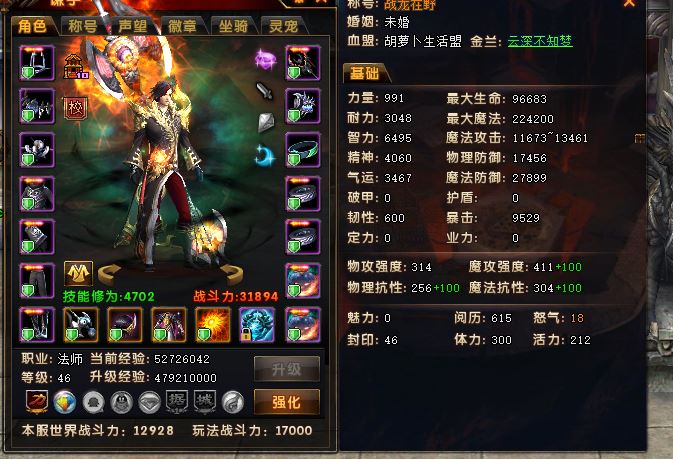 【法师 男 角色等级46 可以二次实名 】3.2w法师,银币可买器灵可吞,15完美武器,500个上品玉,高技能修为