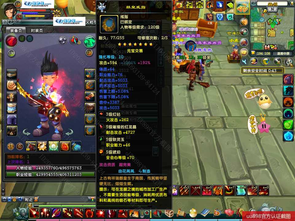 【终身找回包赔】【无法清空资料 角色等级120 男 火枪手 】31万攻击HQ带大鹏攻击宝宝佣兵尾巴啥都有上号就玩