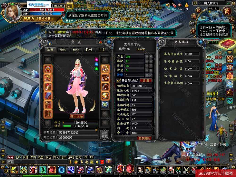 【终身找回包赔】【无法绑定支付宝 格斗家 女 角色等级55 】VIP有!赏金次数有!金币有!