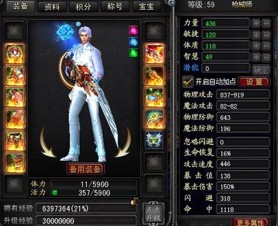 【无法绑定支付宝 枪械师 男 角色等级59 】+8套绑金1800任务链没跑礼包没买