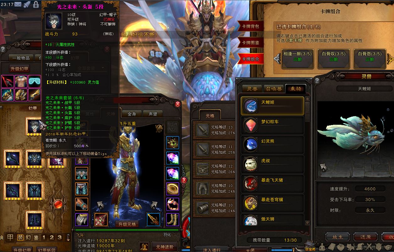 双线一区五行山63合1,65神将1560电提双抗三阶白骨卡牌,70-5幻虚降龙高四缠绵腰破戒,5段未来之刃光之未来幻甲套,7D隐莲忘尘4兽三天鲤姬粽车坐骑,改名