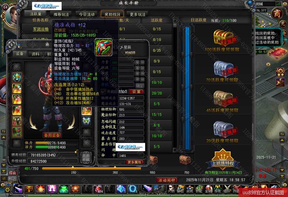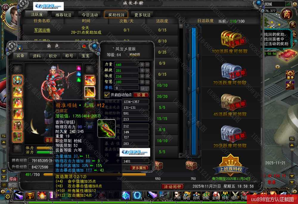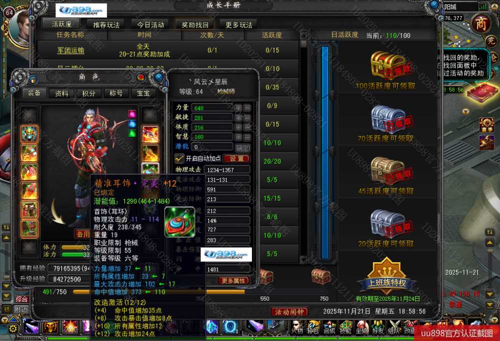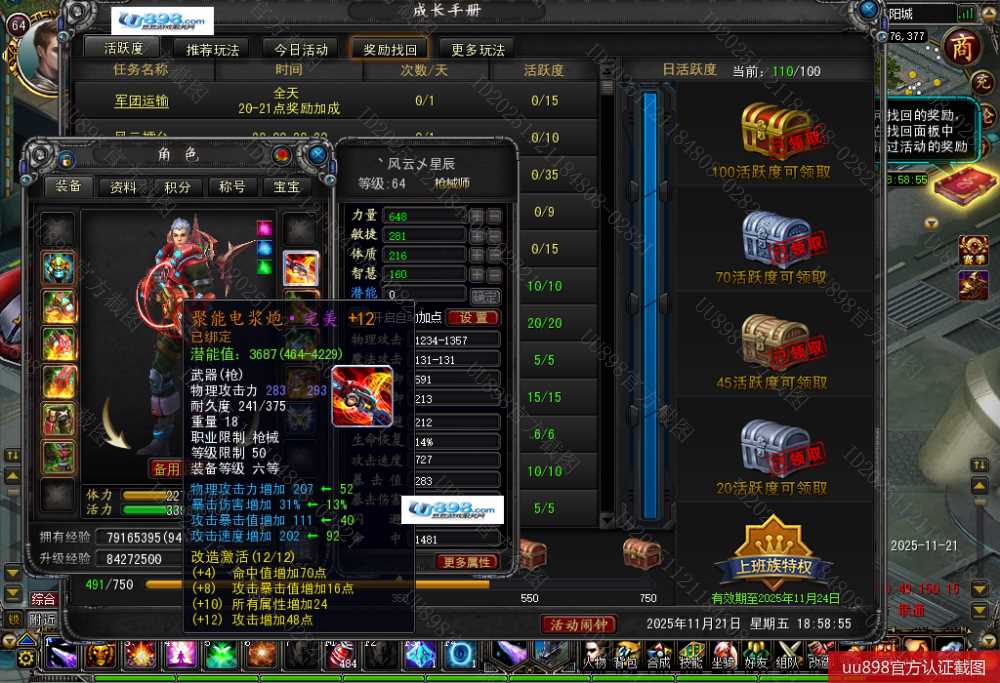 【终身找回包赔】【已绑定支付宝 枪械师 男 角色等级64 】攻击12防具7,8带5个九两个8,秒升65