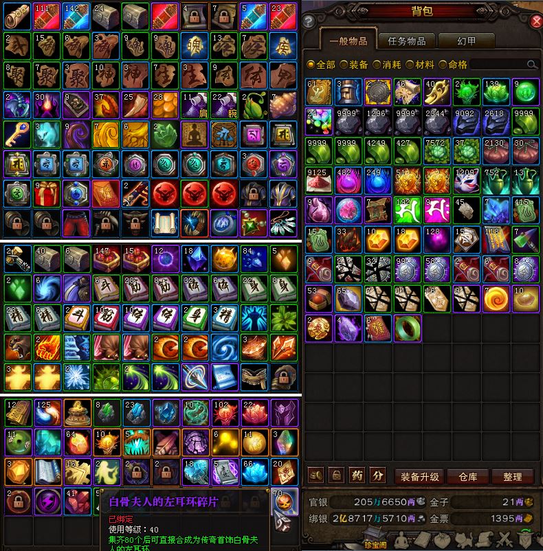 双线四区枯松涧13合1,大背景68牛魔1000火提移速鞋真火戒,高四混沌武器高三狮驼5巨灵3套两印。3段龙血凤髓月灵幻甲火灵晶大背景,6D花旦冰宫葫芦大熊猫坐骑,V6背包2E8绑银仓库有70左耳碎片。
