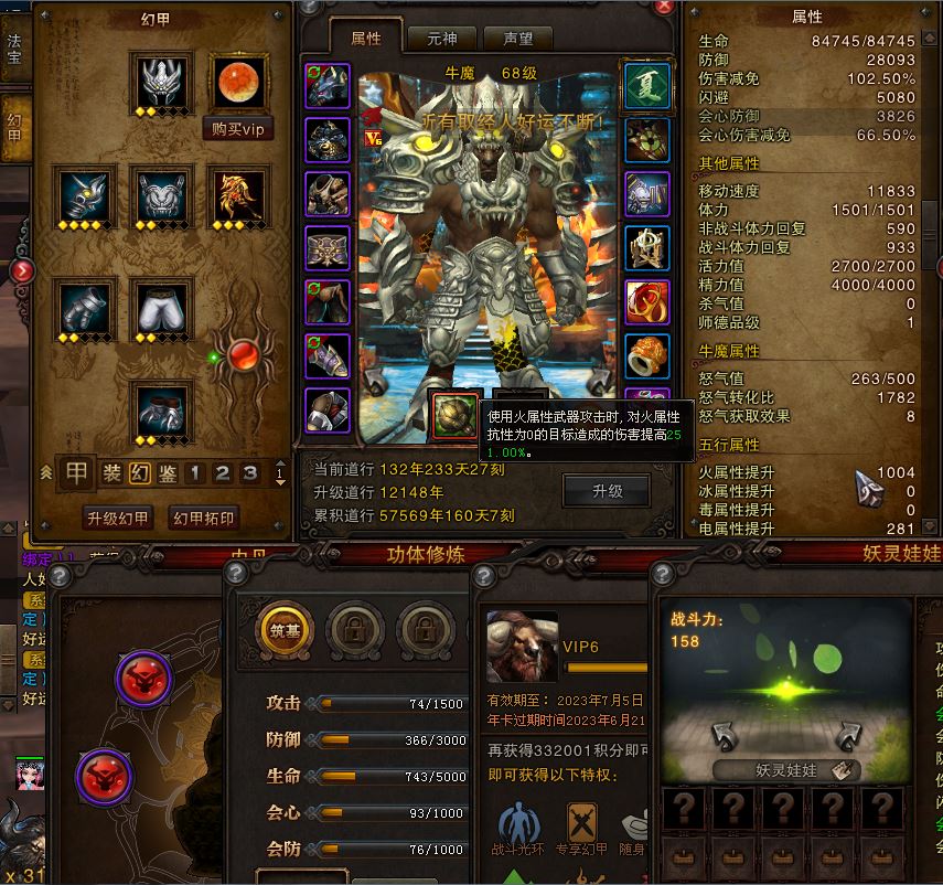 【牛魔 角色等级68 QQ等级11~20级 无QQ好友 】大背景68牛魔千提移速鞋真火戒6D花旦高四混沌武器高三套两印月灵幻甲3段龙血凤髓冰宫70左耳碎片2E8绑银