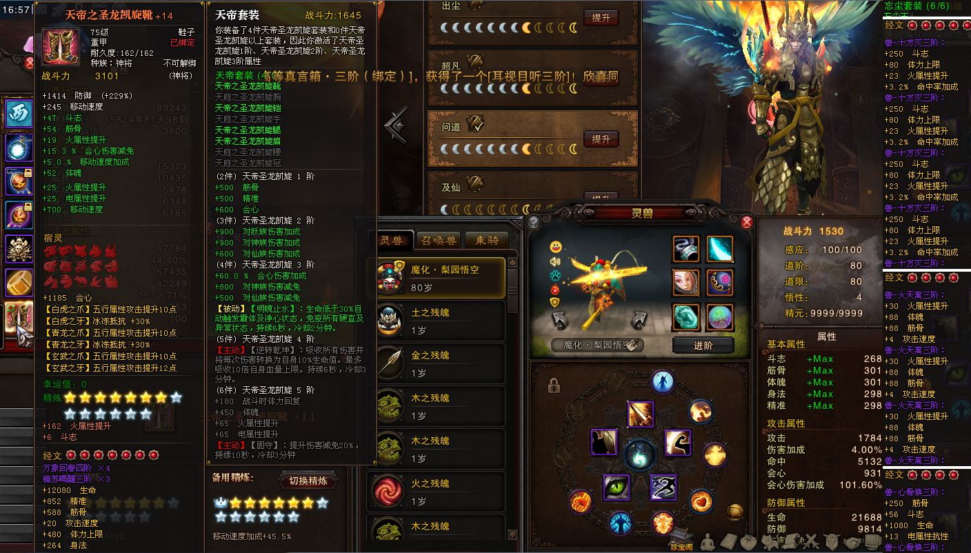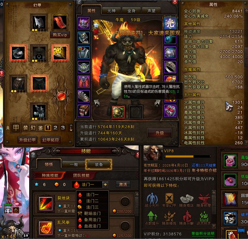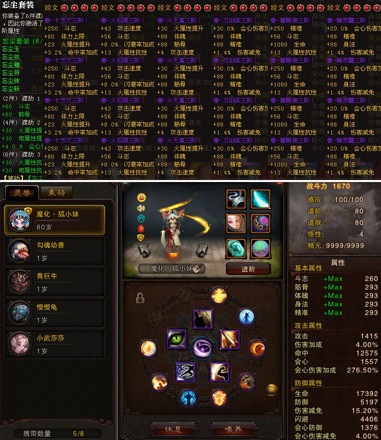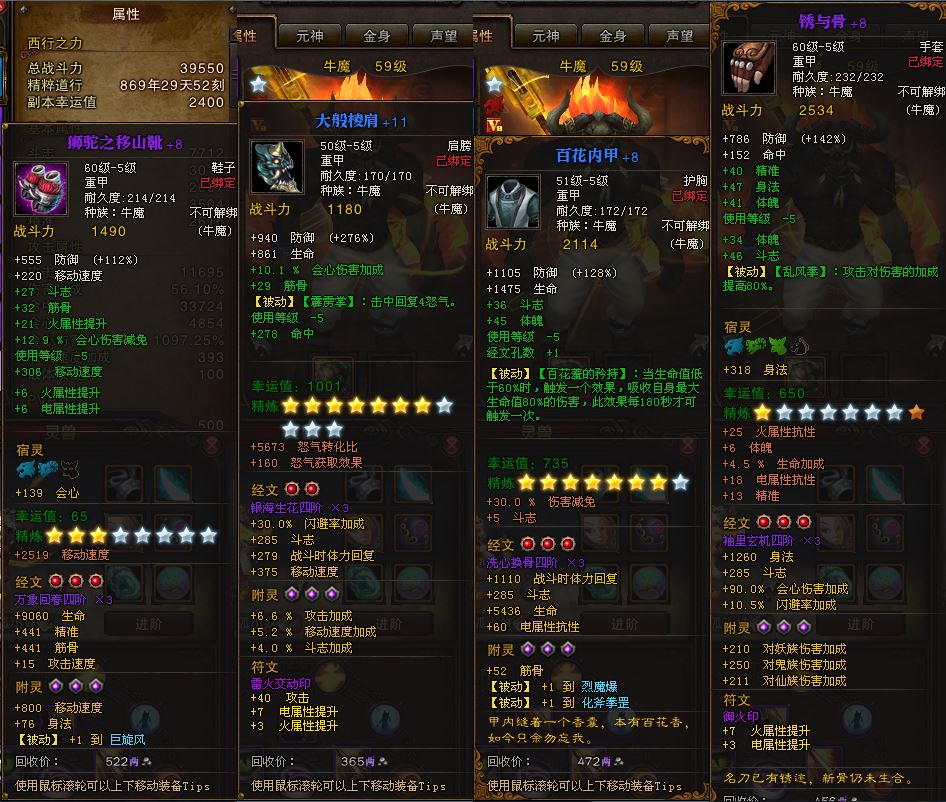 双线四区枯松涧13合1,59牛魔V8万攻56%伤害千3火提移速鞋,高五混沌武器狮驼腰其他高四,有百花锈与骨满堂红破戒真火戒改名。8D魔化狐小妹外圈全3忘尘套24