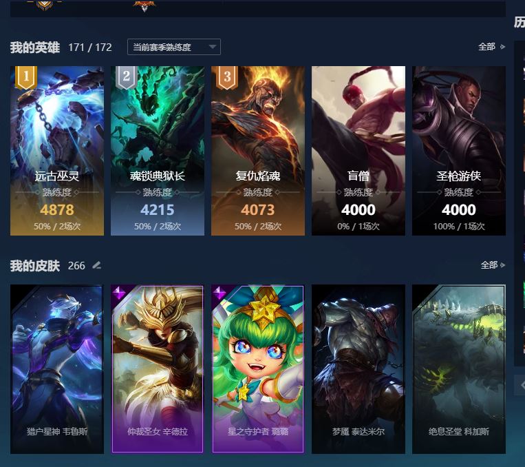 【终身找回包赔】【英雄数量171 皮肤数量266 不屈白银IV 魔法引擎数量0 2.5万以下 召唤师等级241 】优质账号脱坑急出