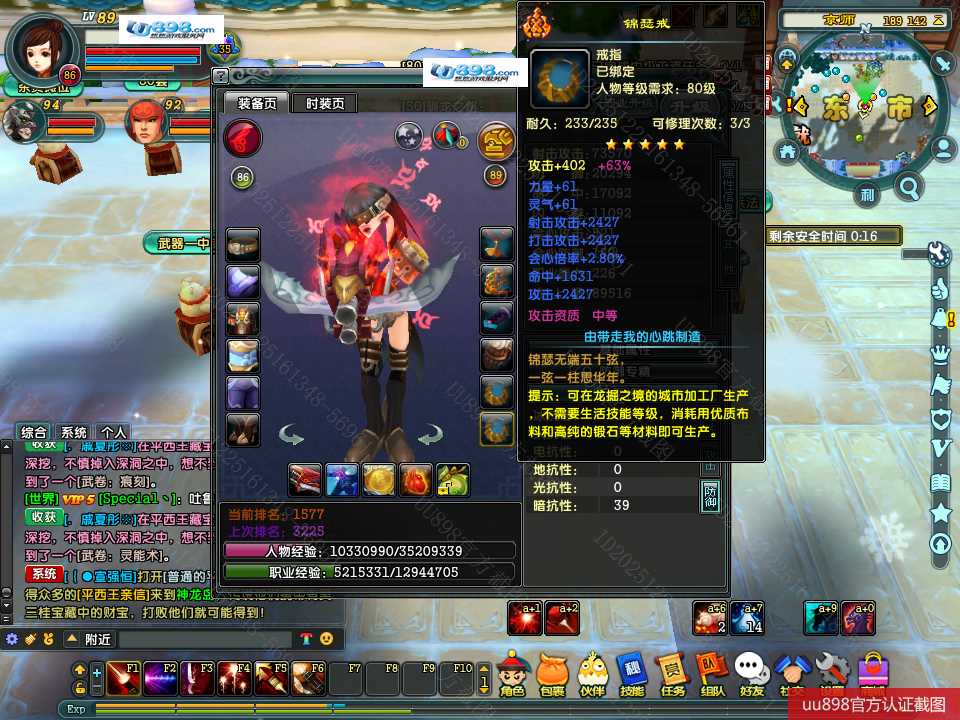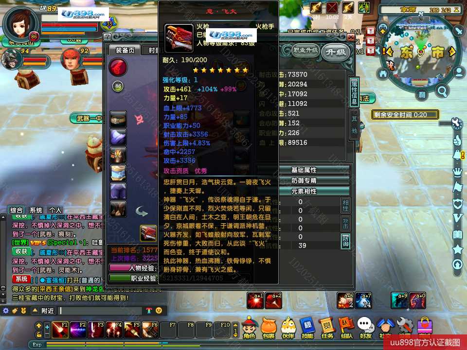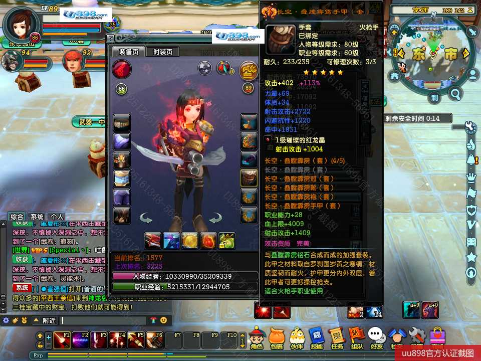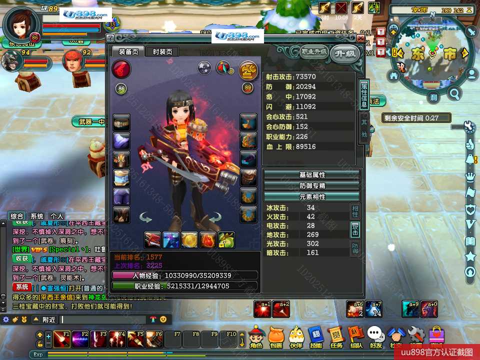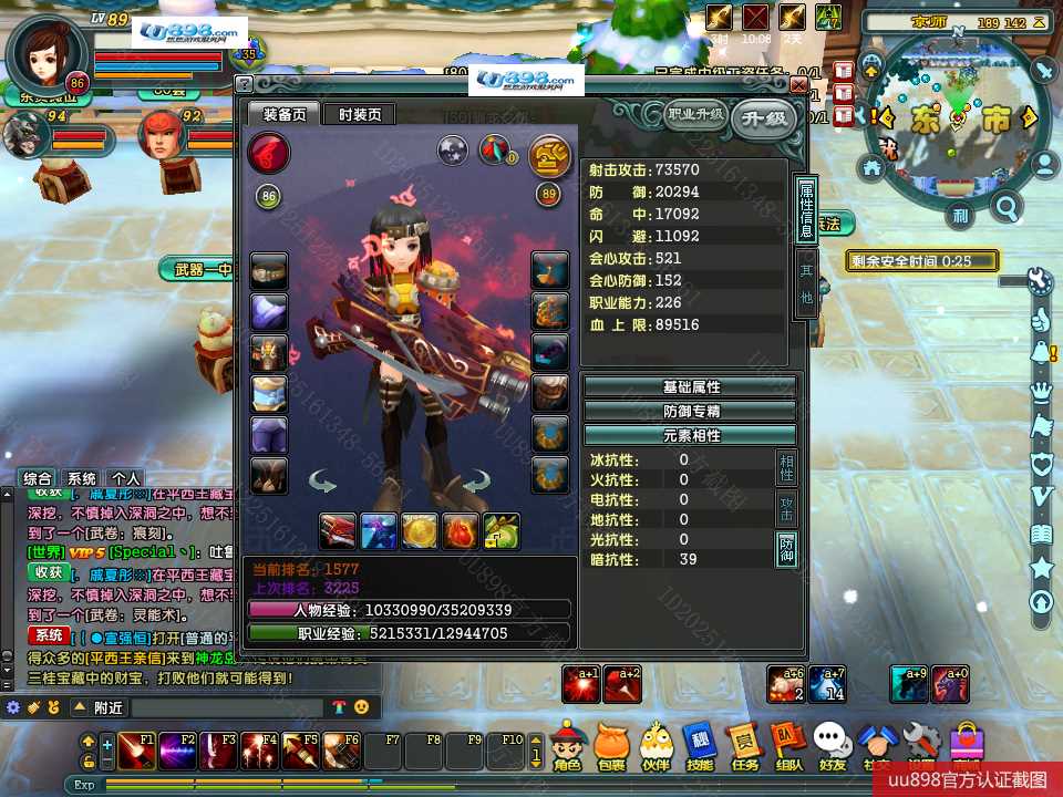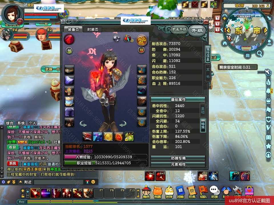 【终身找回包赔】【可协助清空资料 角色等级89 女 火枪手 】没时间玩退游甩号,有神器,有BB,1万余珠宝,上手即能玩