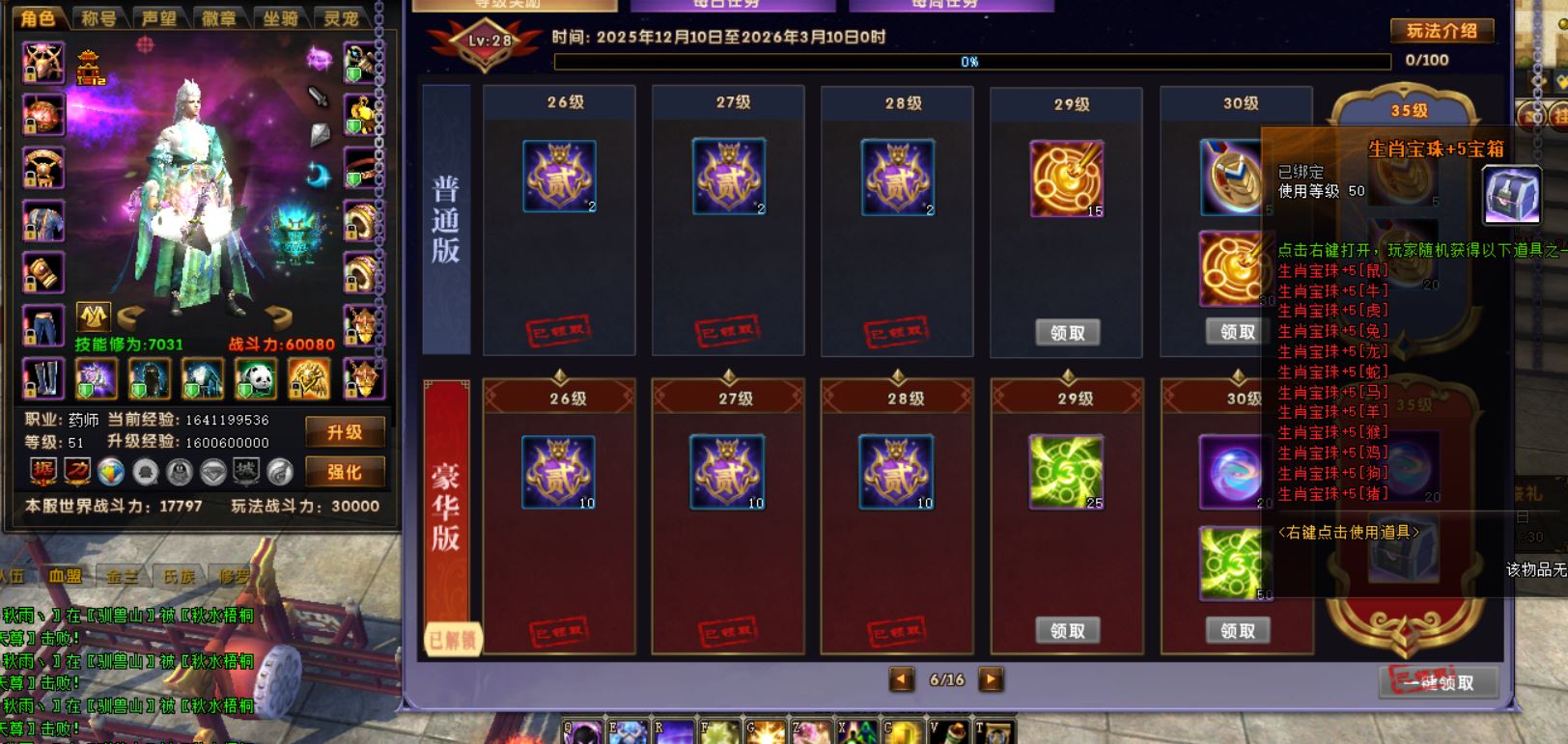 【药师 男 角色等级51 可以二次实名 】6W奶,没时间玩了便宜出,双赛季圣令,生肖+5珠子还没领