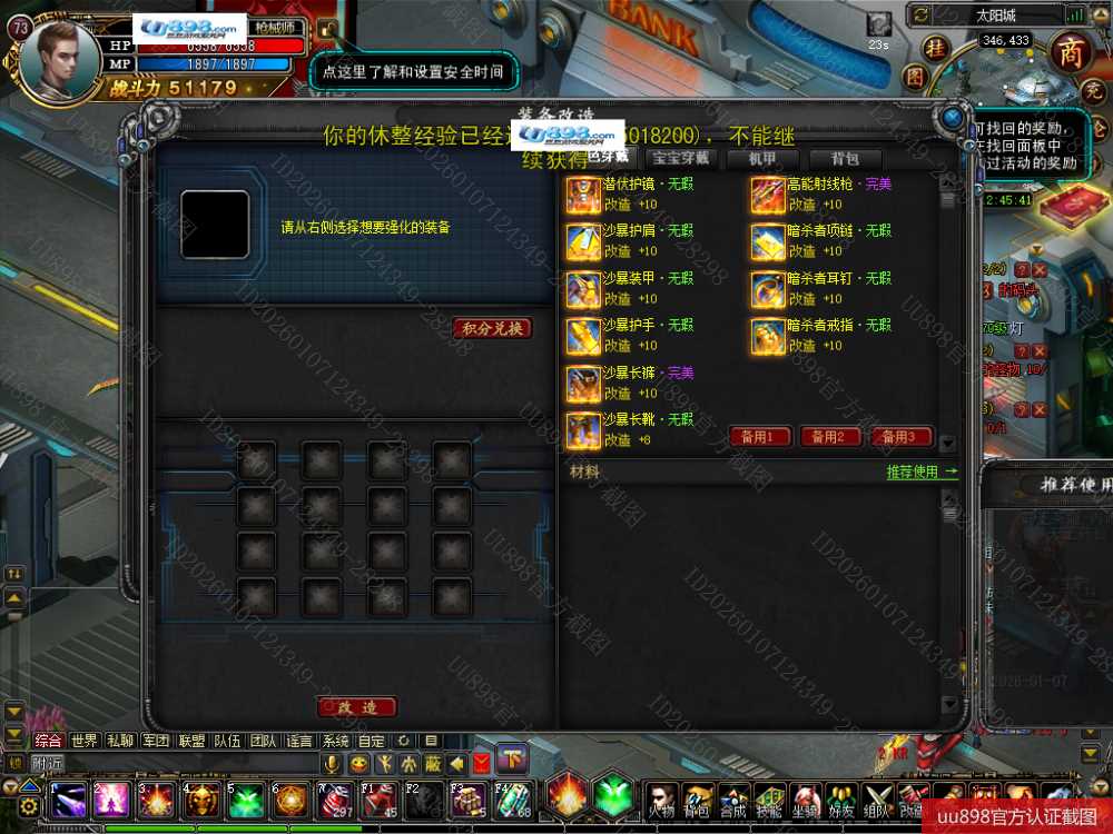 差一件防具+10套,5.1W战,开牧场,仓库两页半