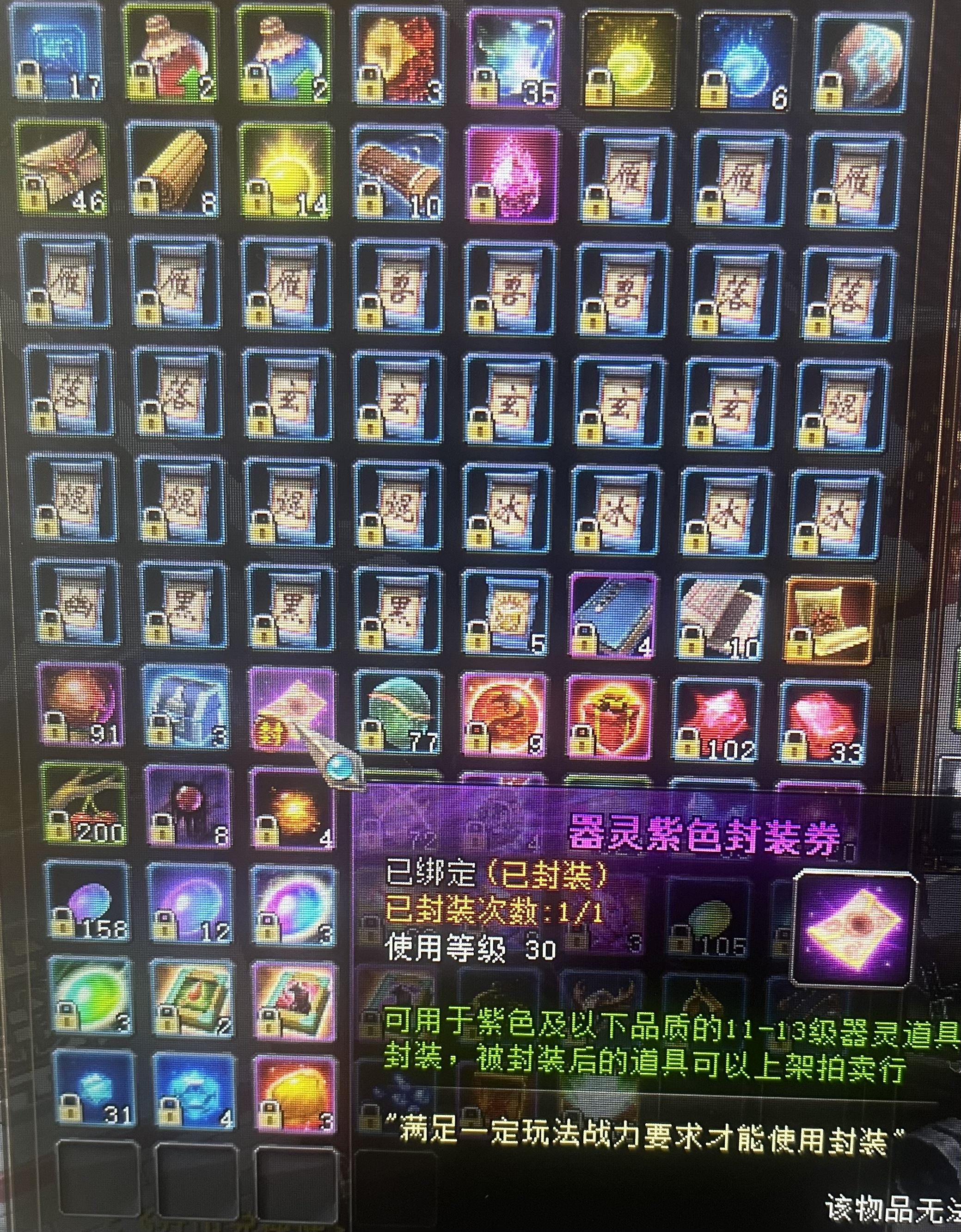 带紫器灵有封装卷器灵经验还差点11级最后紫卖器灵都不赔钱
