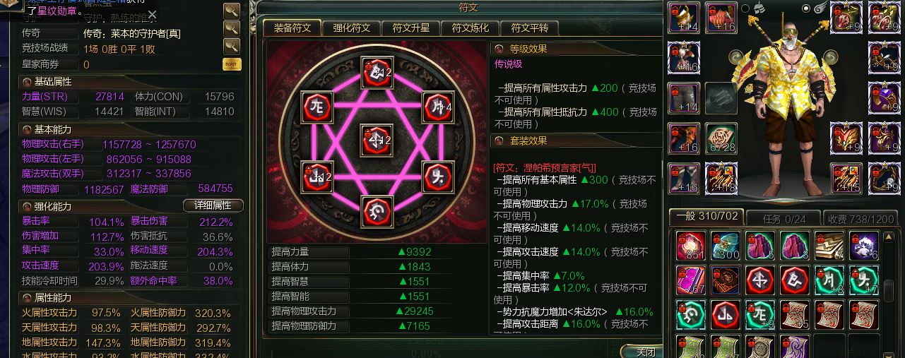 斧子6件不灭防具,副手也是不灭斧子新时装新朋克翅膀,不灭预言家符文13-15星,守护2个不灭2个神圣,带一个7不灭元素新时装新翅膀不灭小丑,17天龙奥术,17连