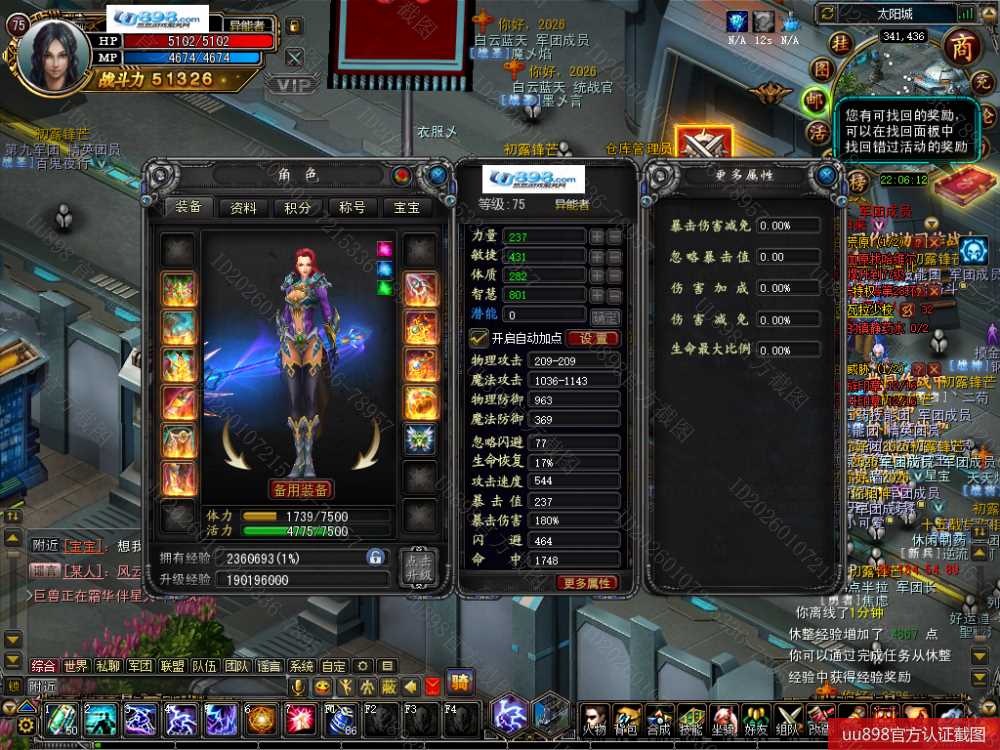 【终身找回包赔】【无法绑定支付宝 异能者 女 角色等级75 】武器11防具4件11