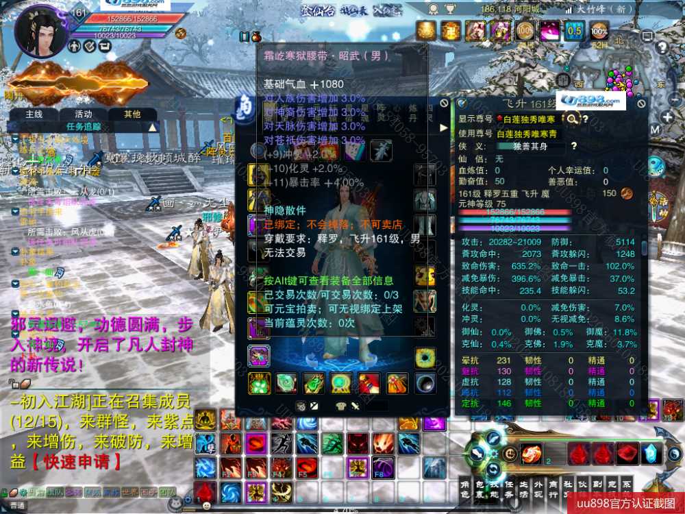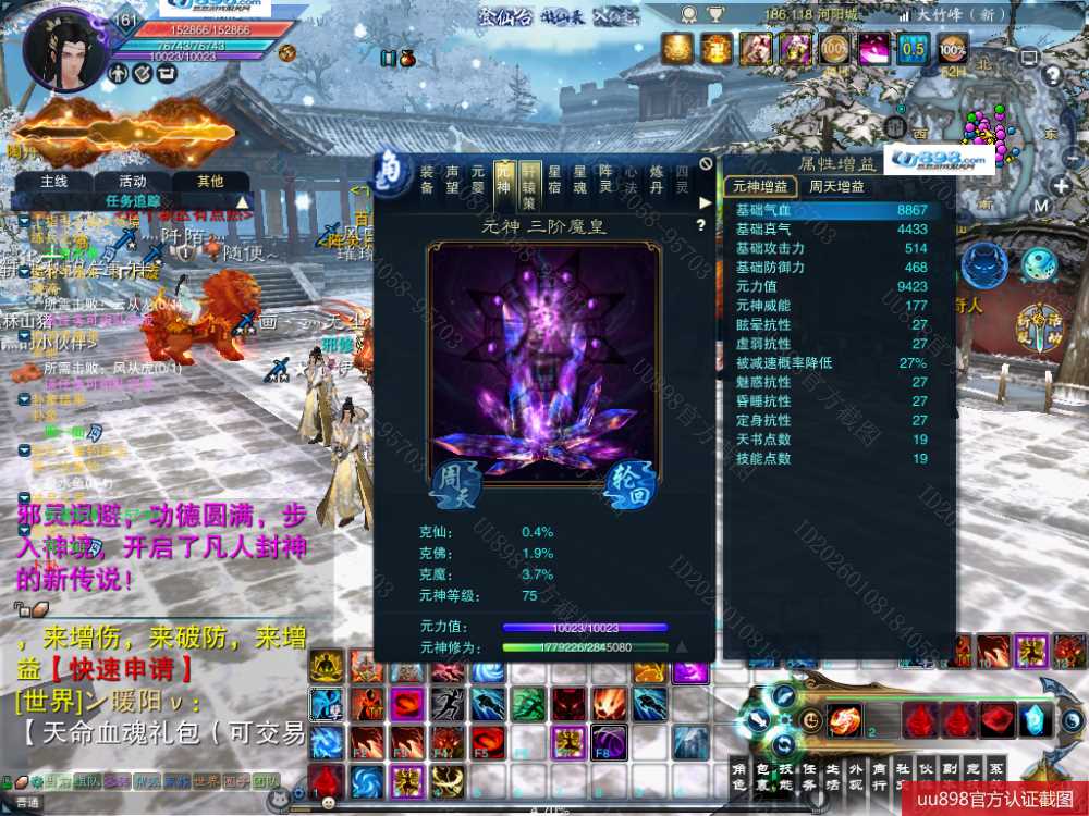 【一个月内,找回包赔】【释罗 五重修真 男 角色等级161 魔 苍祇 】出三礼包释罗号,带三件昭武