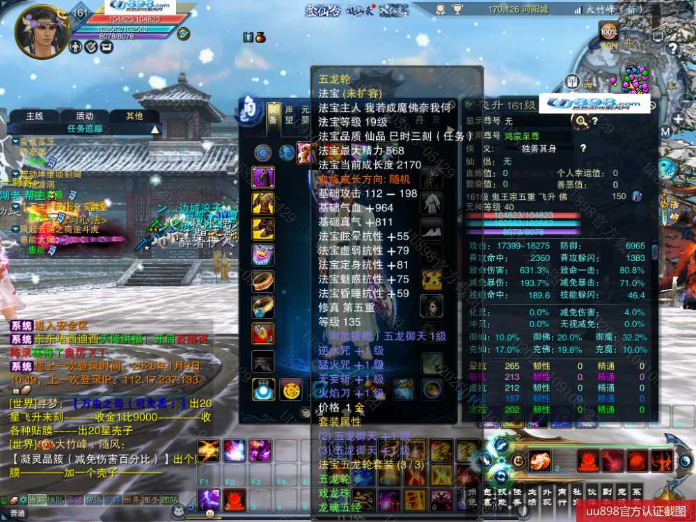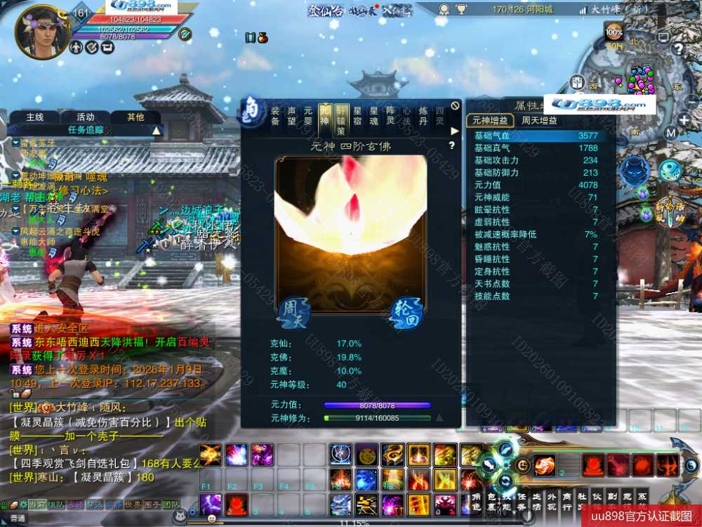 【鬼王 五重修真 男 角色等级161 佛 人族 】7阵基本都12阶,极品元婴,坤9天罡武器,明天领完日月礼包的10个昭武碎片就能换一件昭武了,超值号