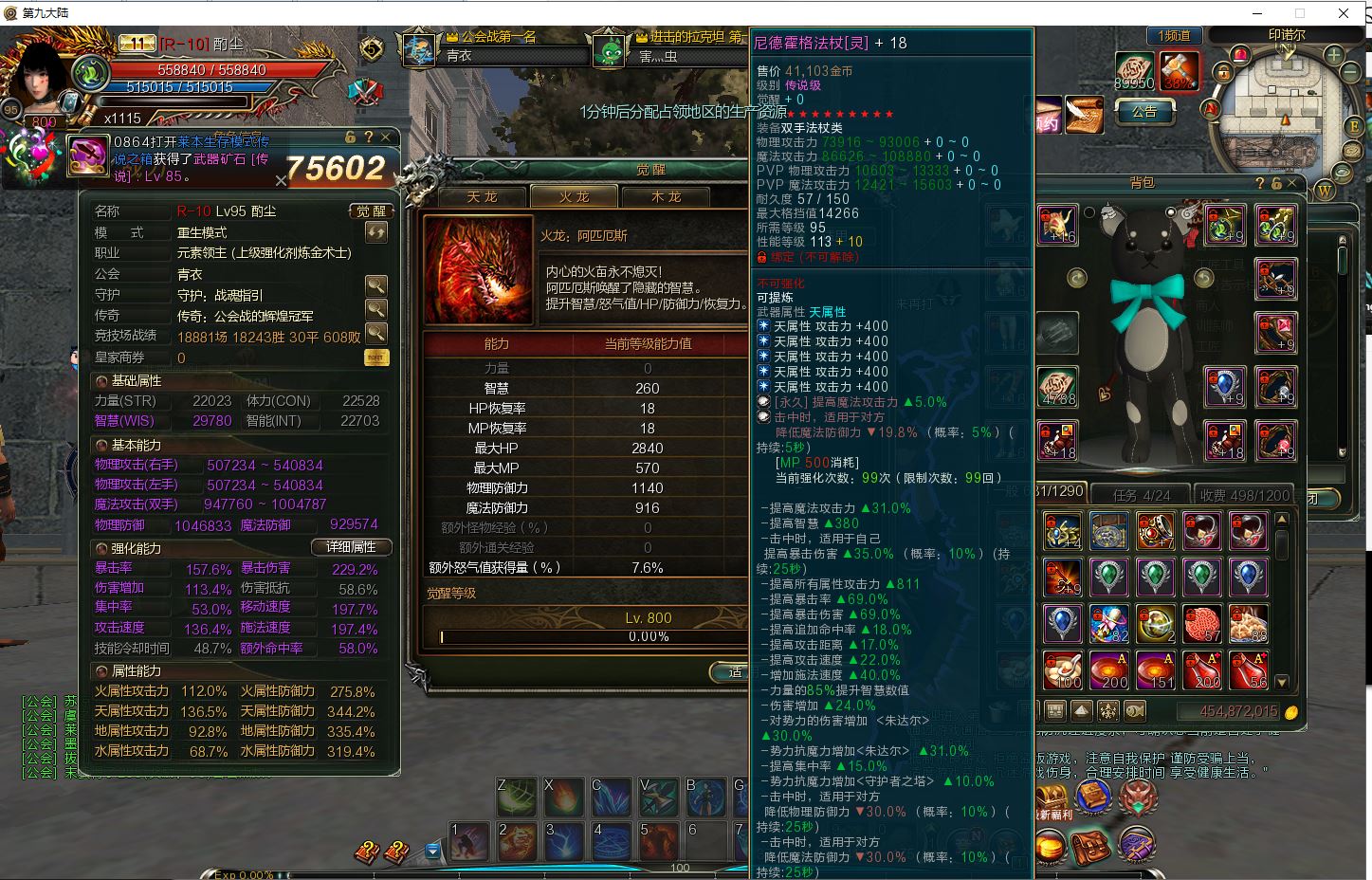 【玲珑 女 等级95 喜游戏账号 】出售95+20新天龙奥术最强号,连体号还有一个R10元素