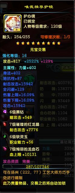 【无法清空资料 角色等级120 女 火枪手 】7级火枪,副本小能手