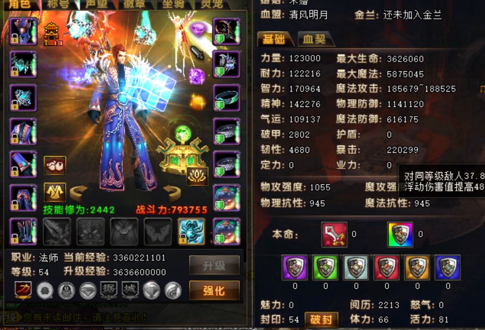 【终身找回包赔】【法师 男 角色等级54 可以二次实名 】54级大法师