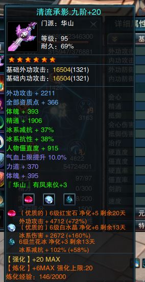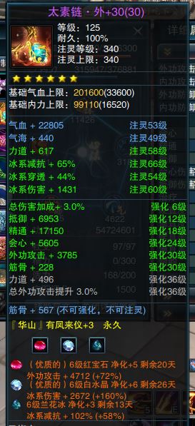 全六级套华山,减抗也全6级,宝石半优质,576阵法,仓库材料多,够用,打架刷本都犀利