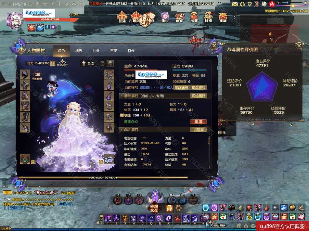 【流光 女 角色等级69 网易类型帐号 】返2000张券已洗3件4属性最新两期时装特效都有便宜出