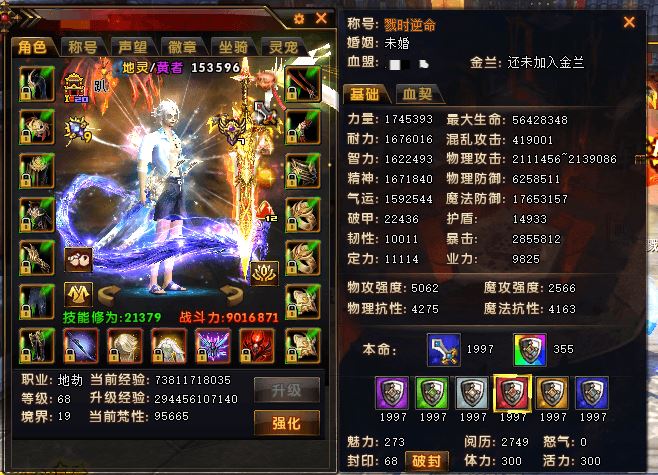 【天煞 男 角色等级68 可以二次实名 】900W地劫没时间玩了