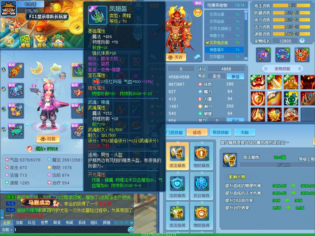 【逍遥仙 灵台山 】电脑端69灵台2W7战简易雄鹰6套特技全愤怒腰瑞凤祥龙骓风马血统坐骑永夜炫彩三光环128饰品内丹大神兽9J龙猫8红天衣凤