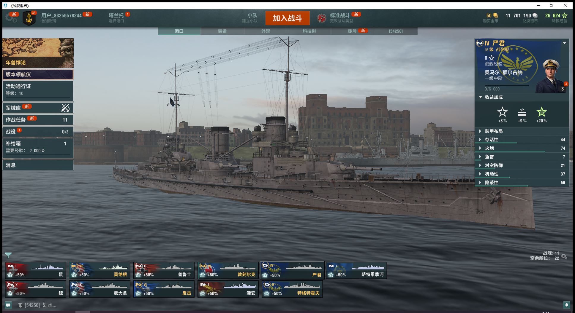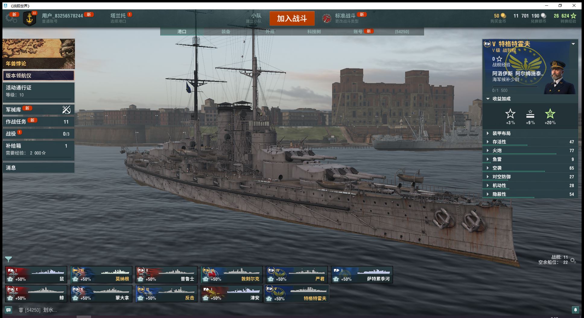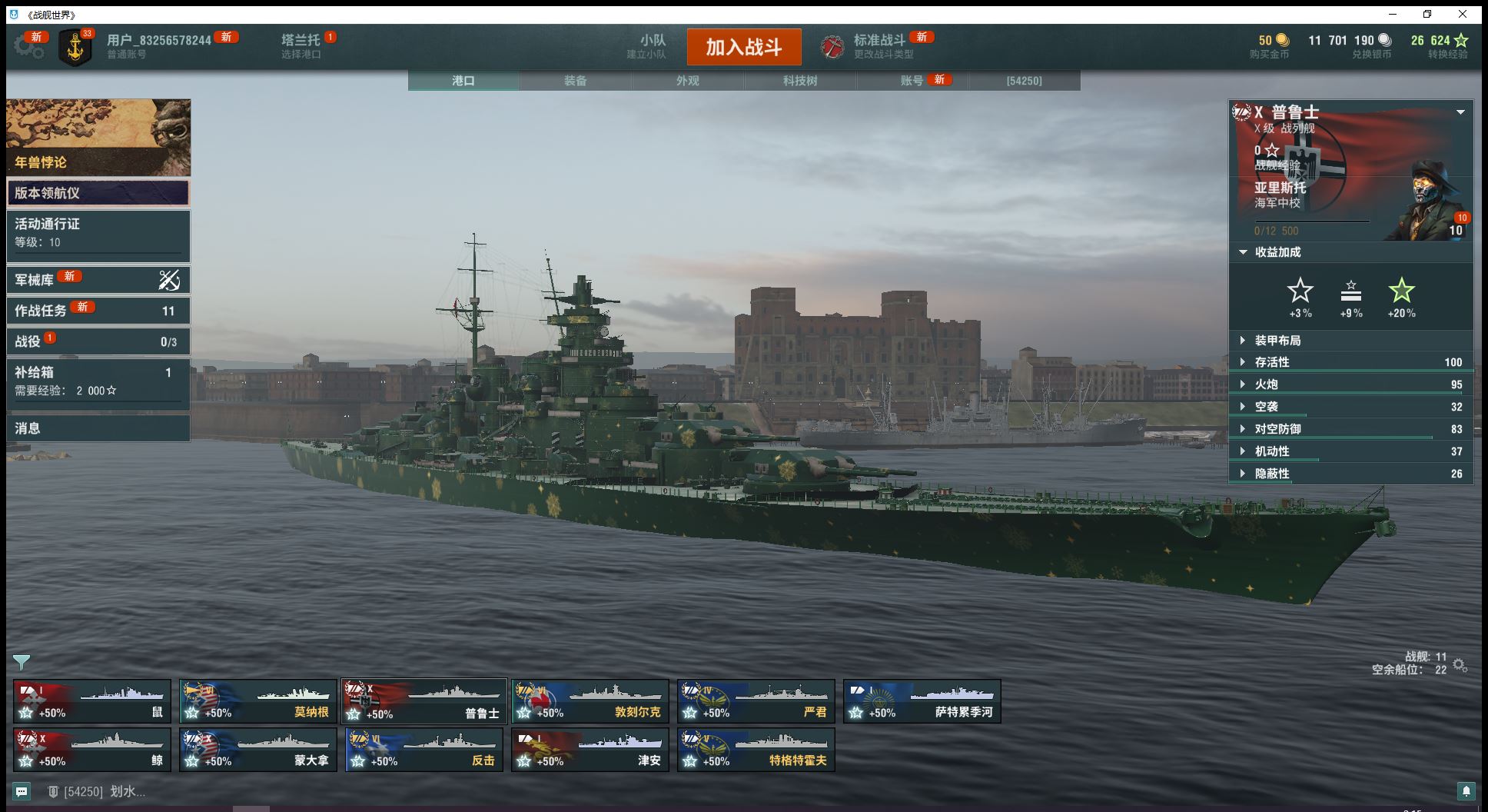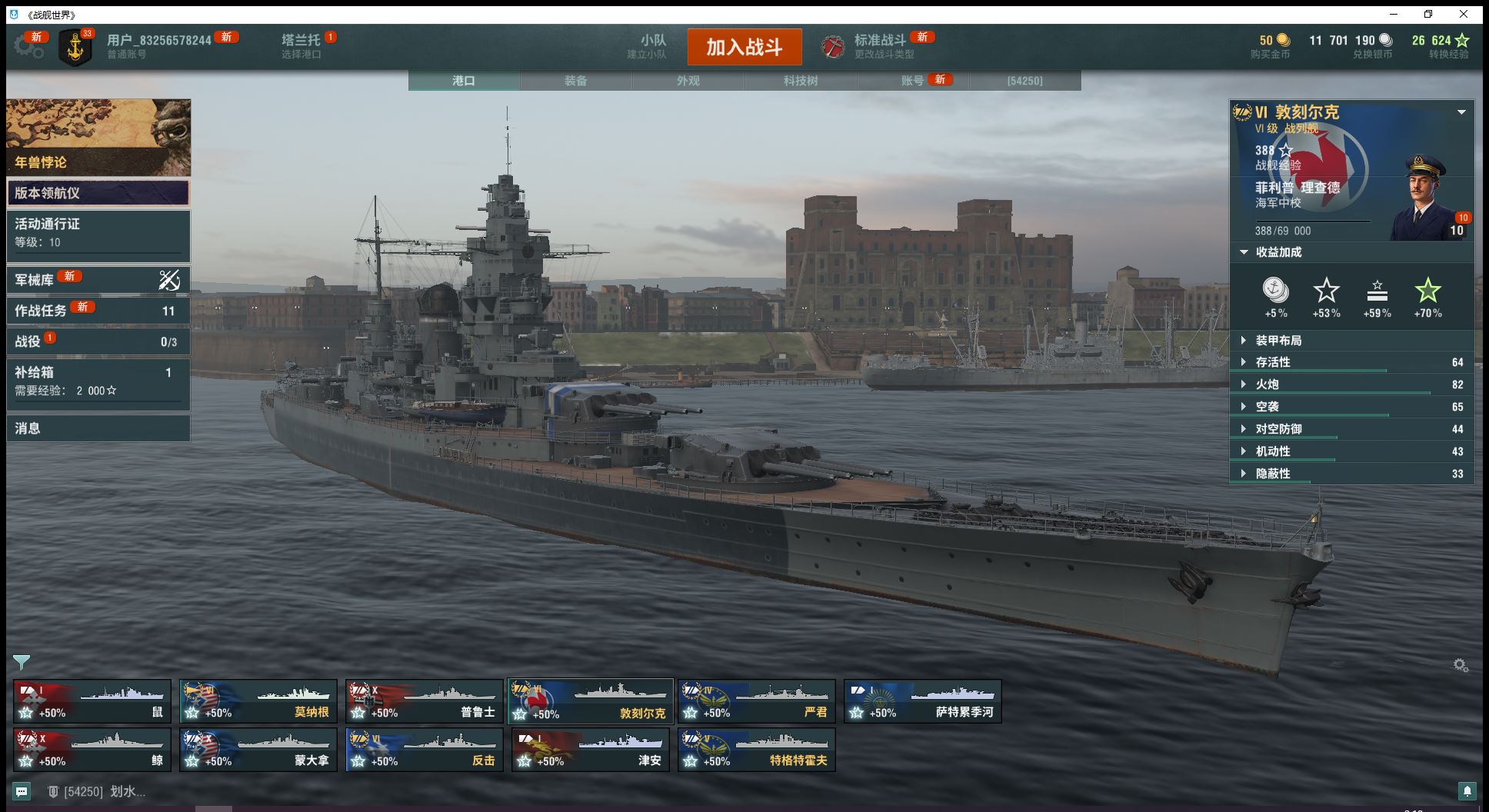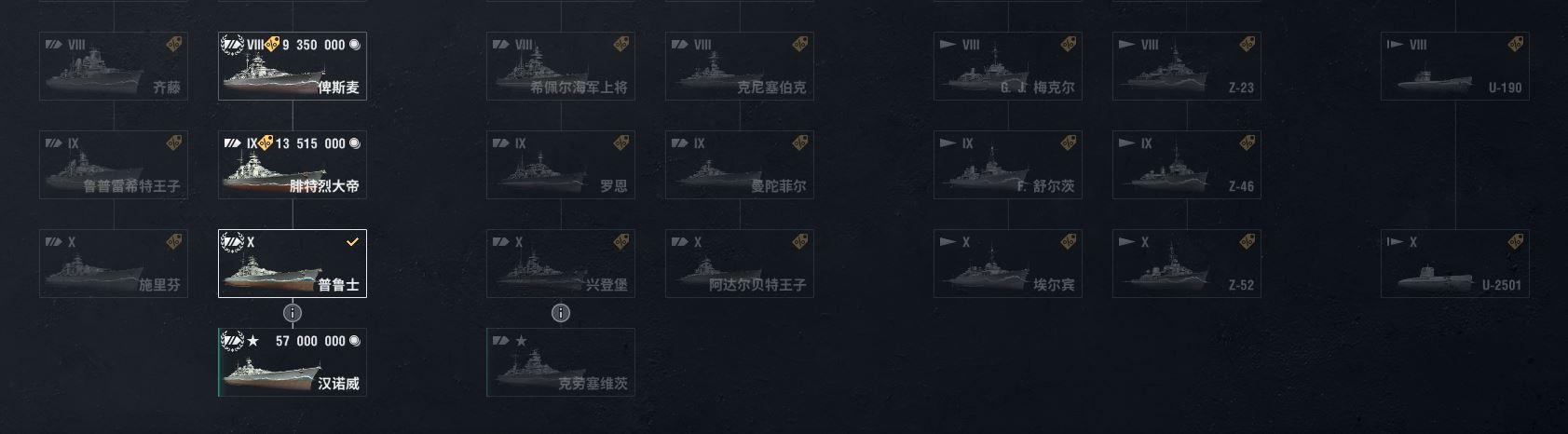自选10级钢船跟9级煤船10级大和蒙大拿普鲁士钢铁24860、煤炭13万3艘6金反击莫纳根敦刻尔克1艘5跟4金已解锁3艘11级超战有足够银币的话可直接购买