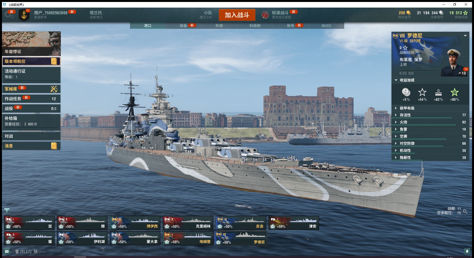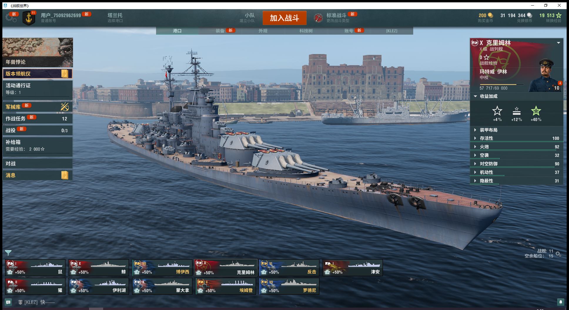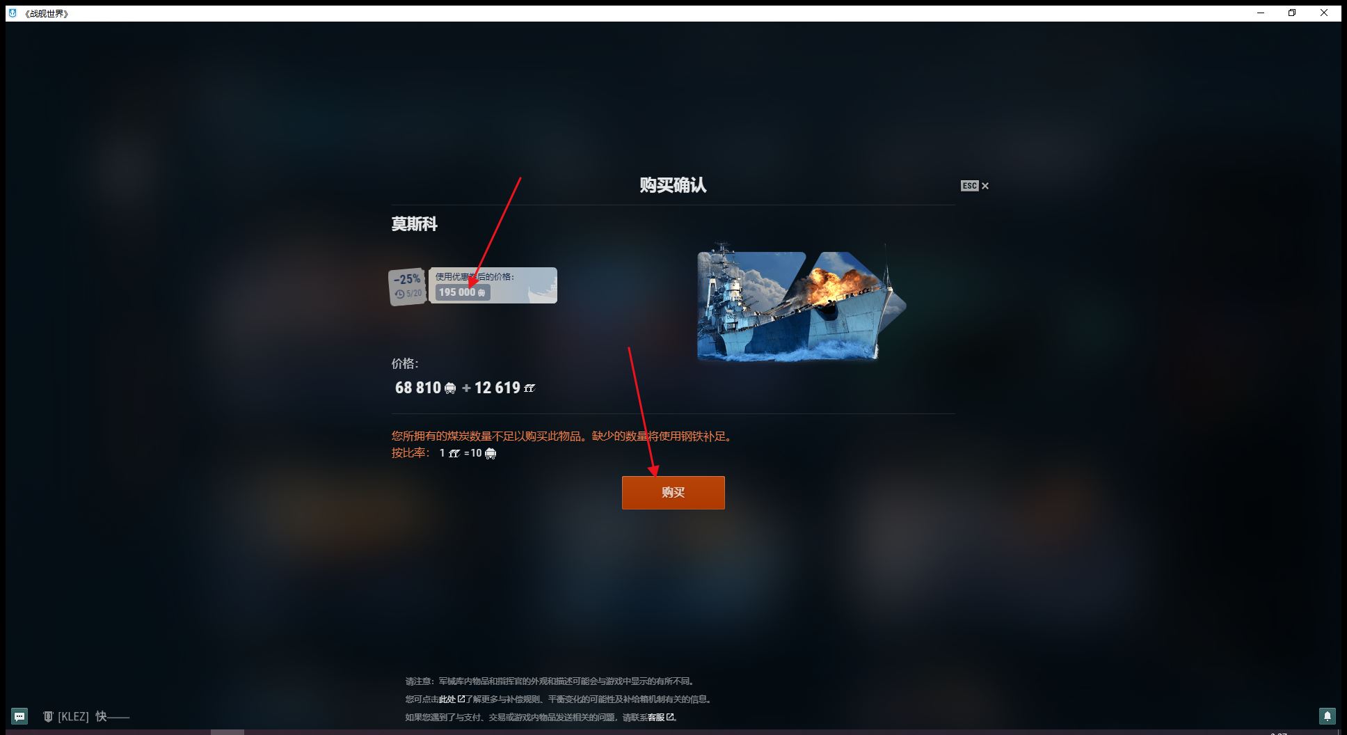 自选1艘10级煤船10级蒙大拿大和克里姆林7金罗德尼博伊西6金反击钢铁15900、煤炭6.8万银币3100万已解锁11级超战有足够银币话可直接购买(J69)