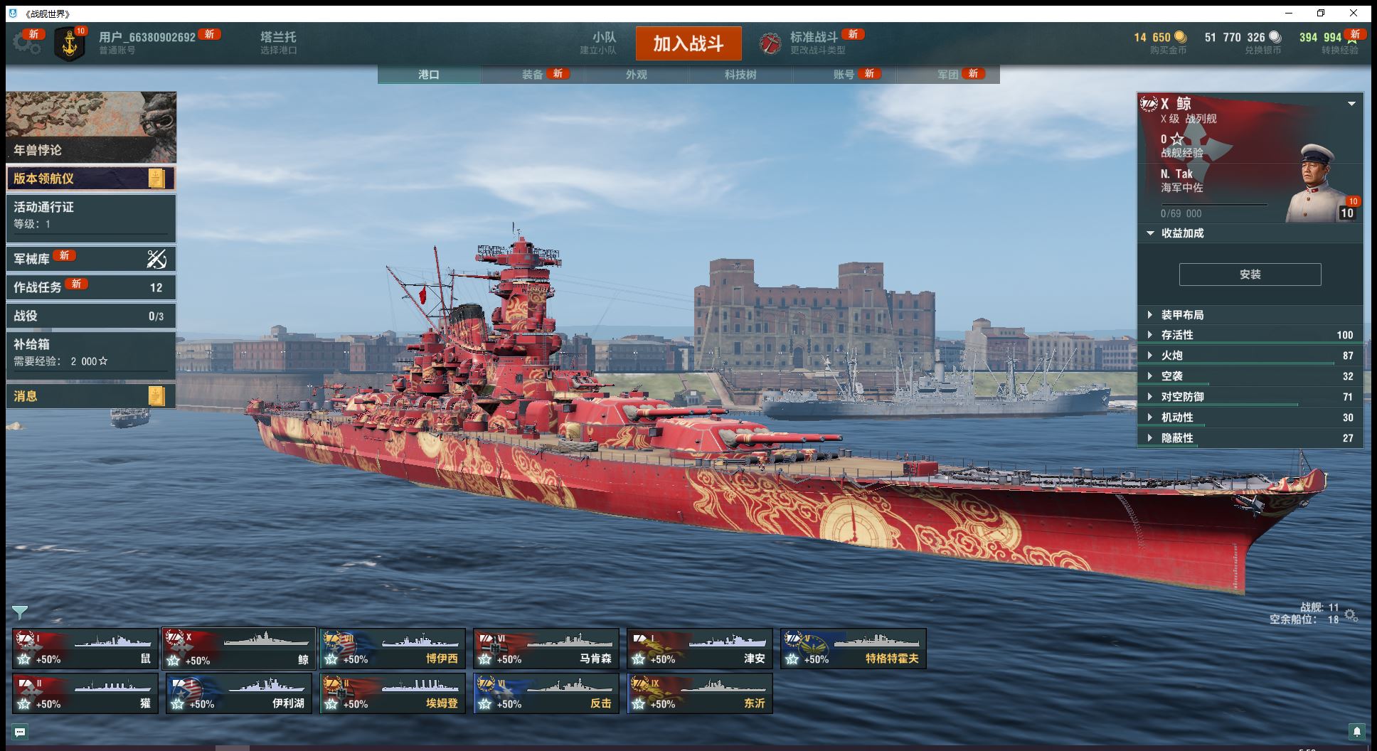 9级金币船东沂10级大和6级马肯森7金博伊西6金反击5金特格特金币14650煤炭5.3万银币5千万全局39万(J74)