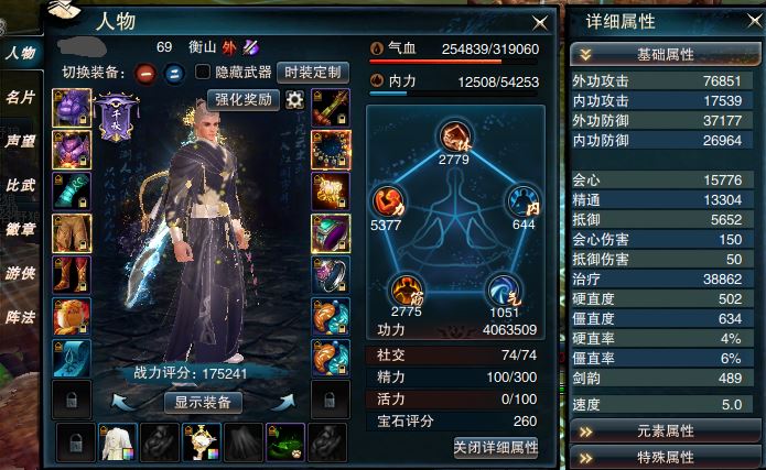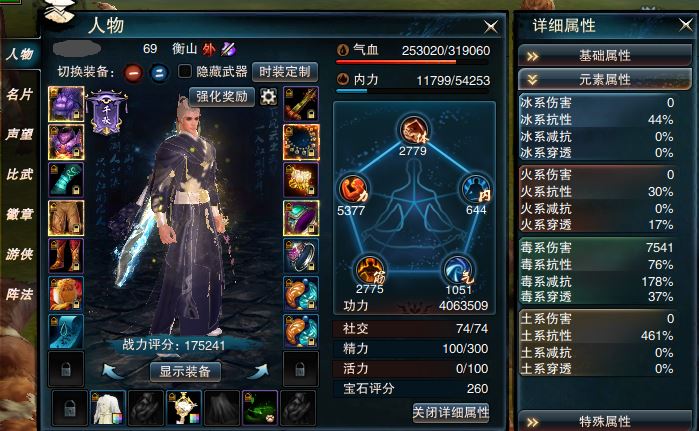 【帐号出售 衡山 男 角色等级69 江湖令剩余天数725 】17.5w战衡山退坑出资料全