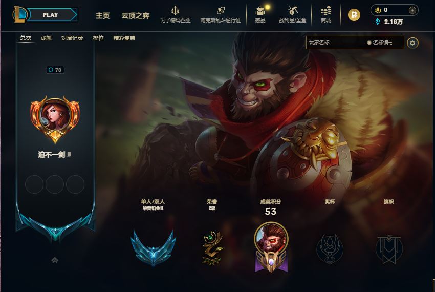 【英雄数量58 皮肤数量3 华贵铂金II 魔法引擎数量0 2.5万以下 召唤师等级78 】S16铂金2可换绑改密小号永不找回
