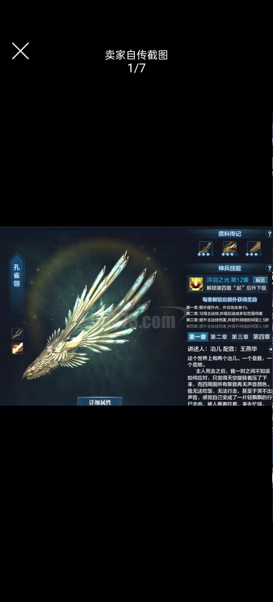 25.12功力,5.5魅力,神池衣服,3重孔雀,毛满飞仙,永久破空武器.镇派首饰8899级。