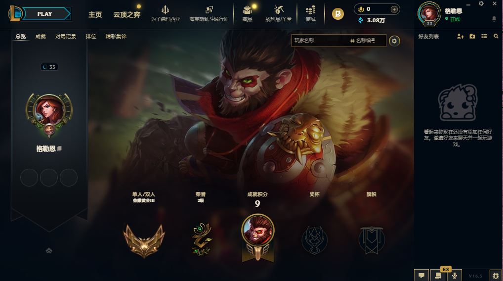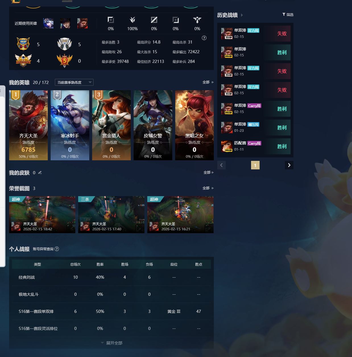 【英雄数量20 皮肤数量0 荣耀黄金III 魔法引擎数量0 2.5万-3万 召唤师等级30 】S16黄金3可换绑改密小号永不找回