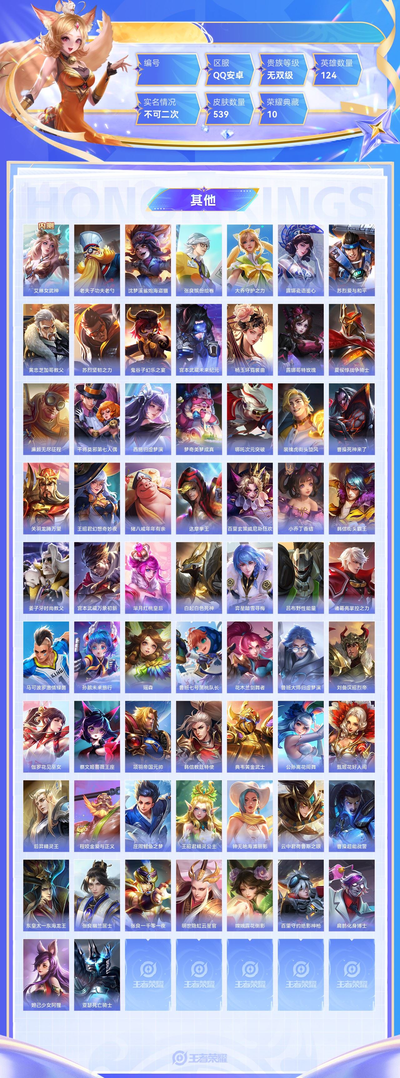 【终身找回包赔】【5级铭文数量0 召唤师等级0 白银Ⅰ 贵族V0】【终身找回包赔】【69SUJ21GG】珍品传说2无双5典藏10传说99史诗192限定226英雄124皮肤539稀有英雄10贵族无双级皮肤价值:658366 【珍品传说2】马可波罗怪盗基德鲁班七号江户川