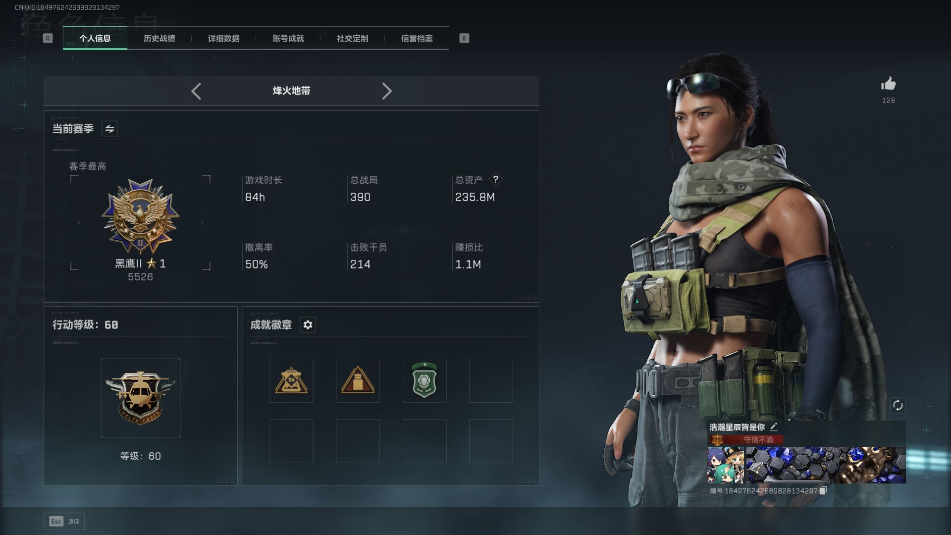 出售三角洲账号资产: QQ(VX)区:qq区 账号常登录地区(省份):济南 等级:满级 段位:黑鹰3 KD:1.1 哈夫币数量:120m 账密还是