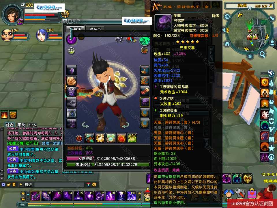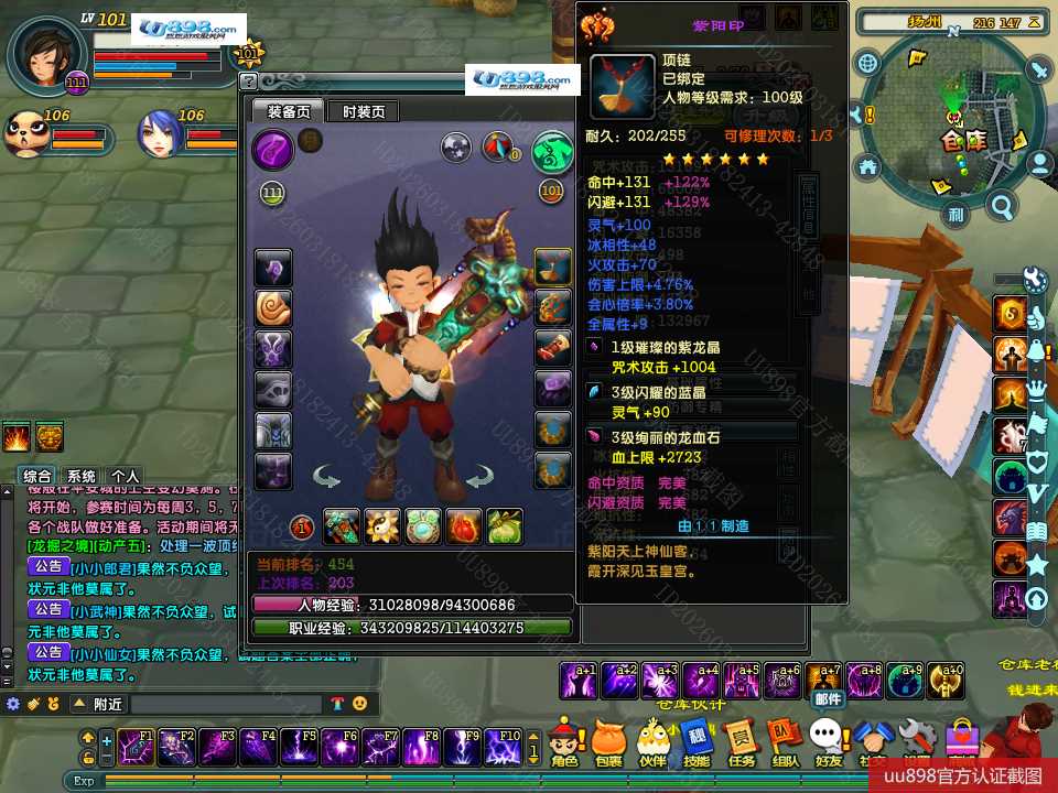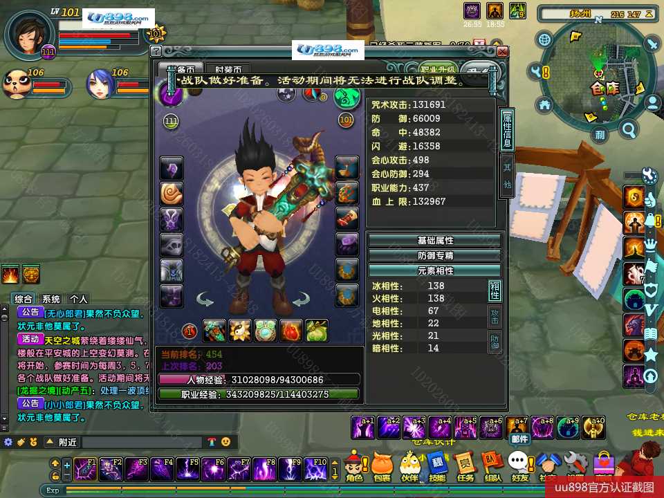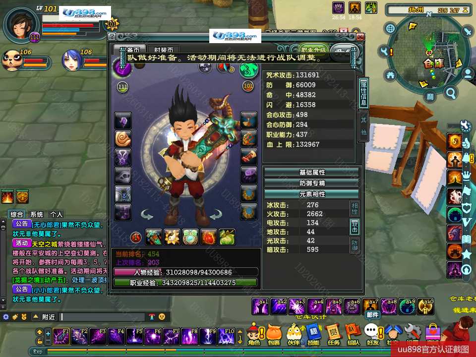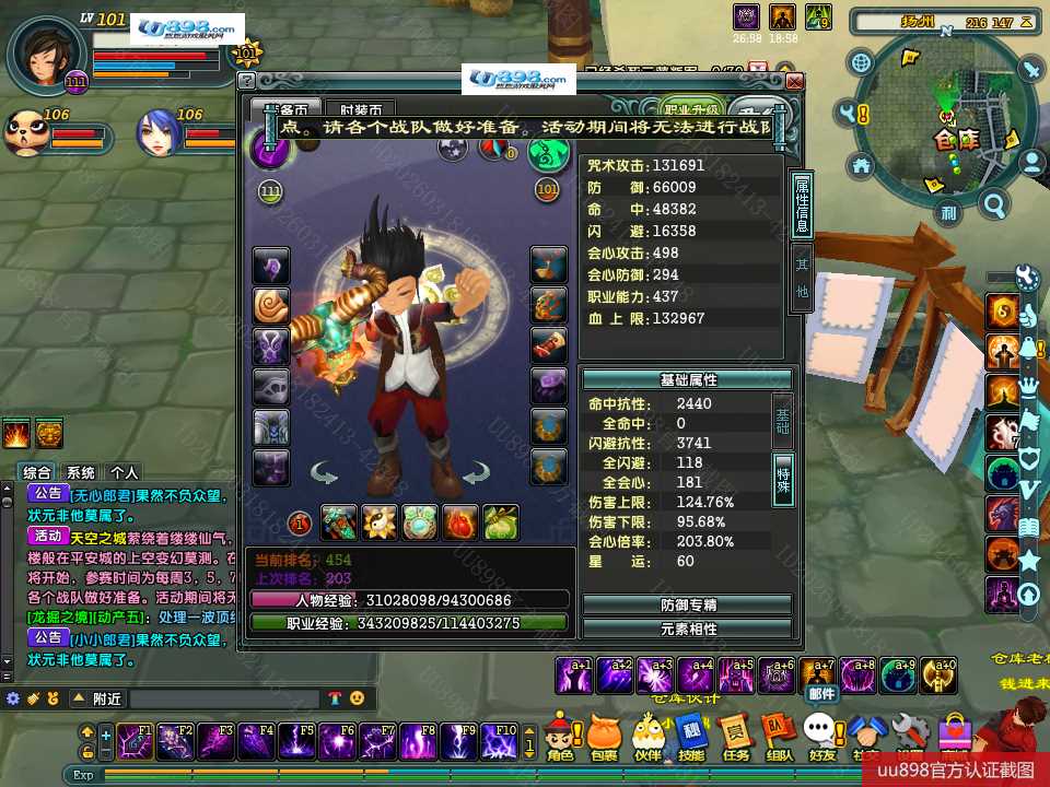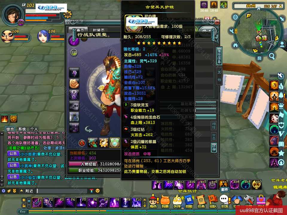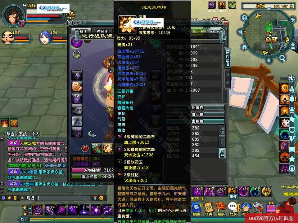 【终身找回包赔】【无法清空资料 角色等级101 男 隐者 】101级隐者带宝宝攻击和血上限都是13万火攻2600包里还有若干钻石