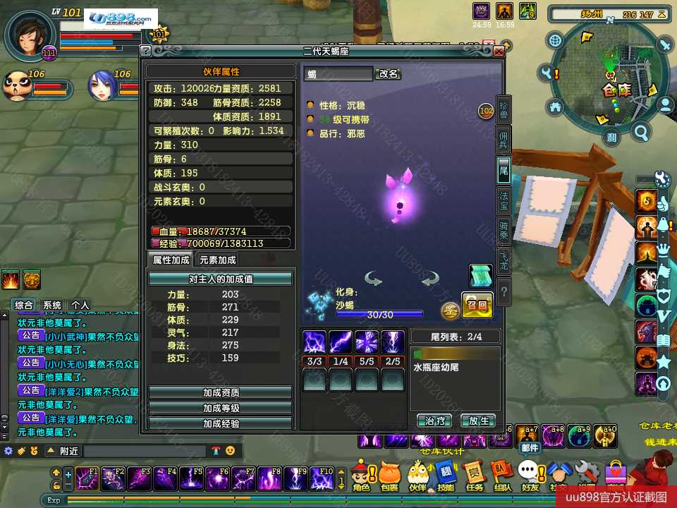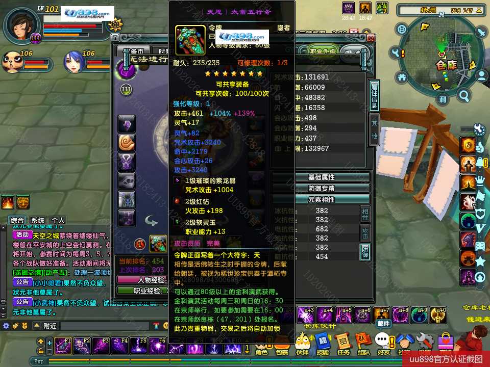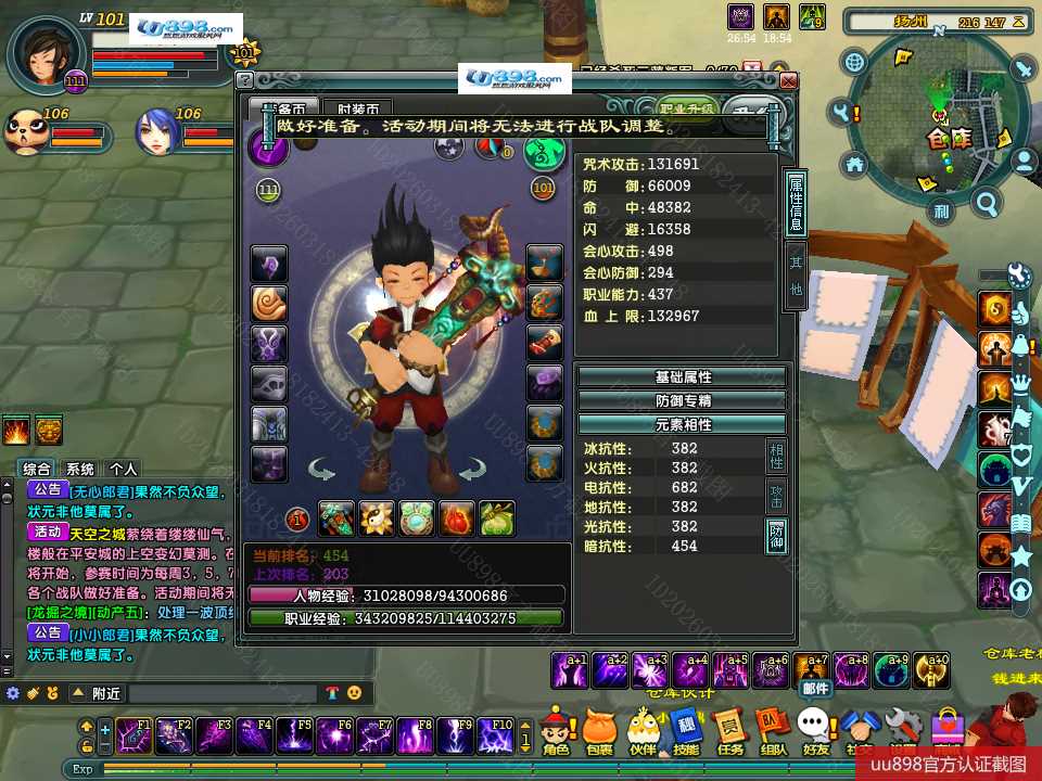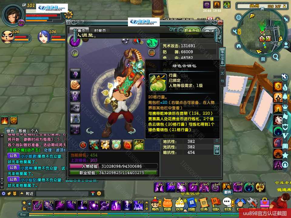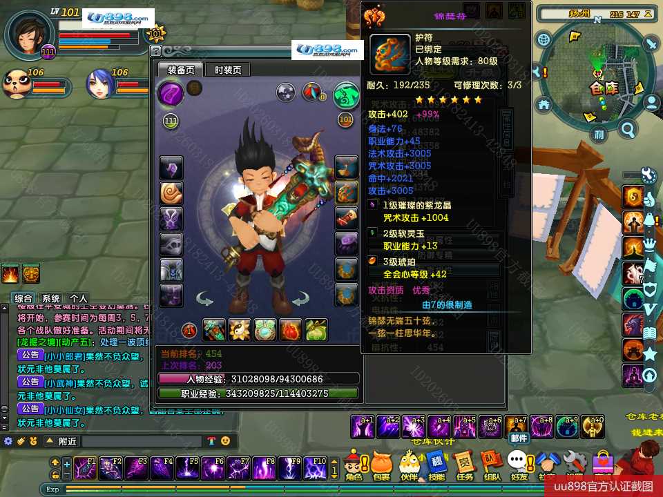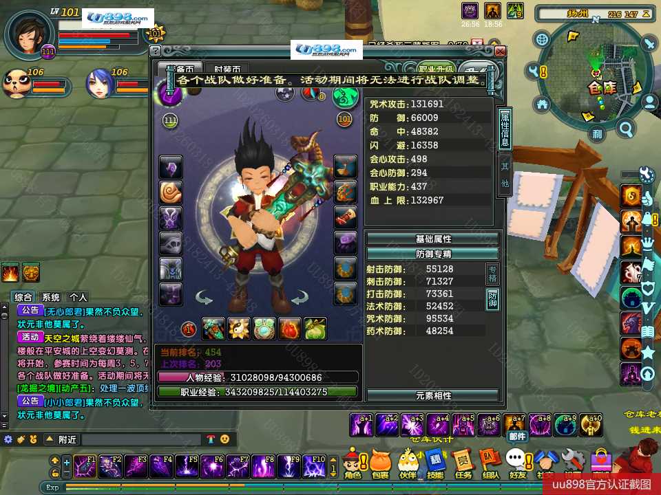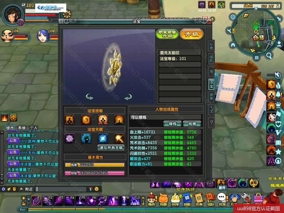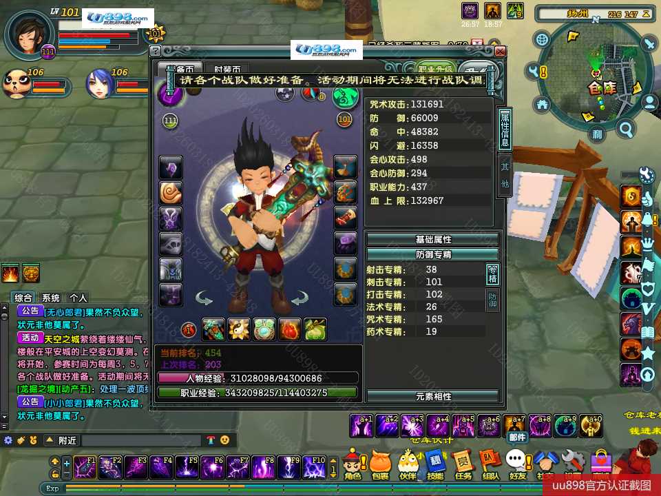 【终身找回包赔】【无法清空资料 角色等级101 男 隐者 】101级隐者带宝宝攻击和血上限都是13万火攻2600包里还有若干钻石