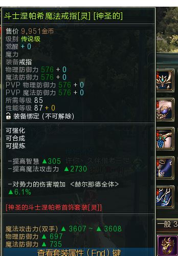 【85斗士涅帕希戒指(灵)神圣的】免洗极品属性 可升级不灭 可直接使用