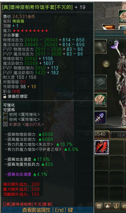 【玲珑95防具 玲珑不灭防具】玲珑95不灭防具手套+19-9超越10觉醒1