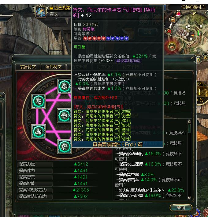 顶级海尼尔的传承者符文气七大件华丽灿烂+12+12+12套21305便宜卖了